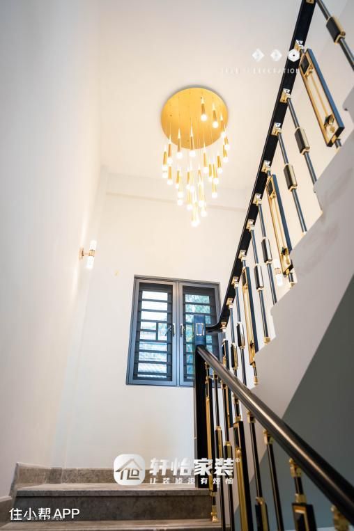 对于复式房子来说,楼梯不仅是连接上下层的通道,而应是一个舒适的空间,所以楼梯的设计也是非常讲究的。 纯白色的墙体,仅用一盏流苏吊顶灯和两盏壁灯来点缀,简约不单调,搭配断桥铝窗的通透和金属材质的楼梯护栏,大气又不失雅调,低调的轻奢特色一呼而出。