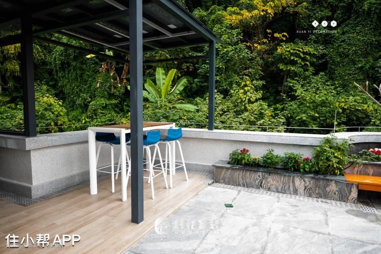 楼顶花园大概是最让人羡慕的区域,绿荫环绕实现在家就坐拥天然氧吧的便捷。设计师根据业主的生活习惯,在楼顶花园安排了高脚凳和高脚桌,饭后一家人在楼顶谈天说地也是很好的去处!