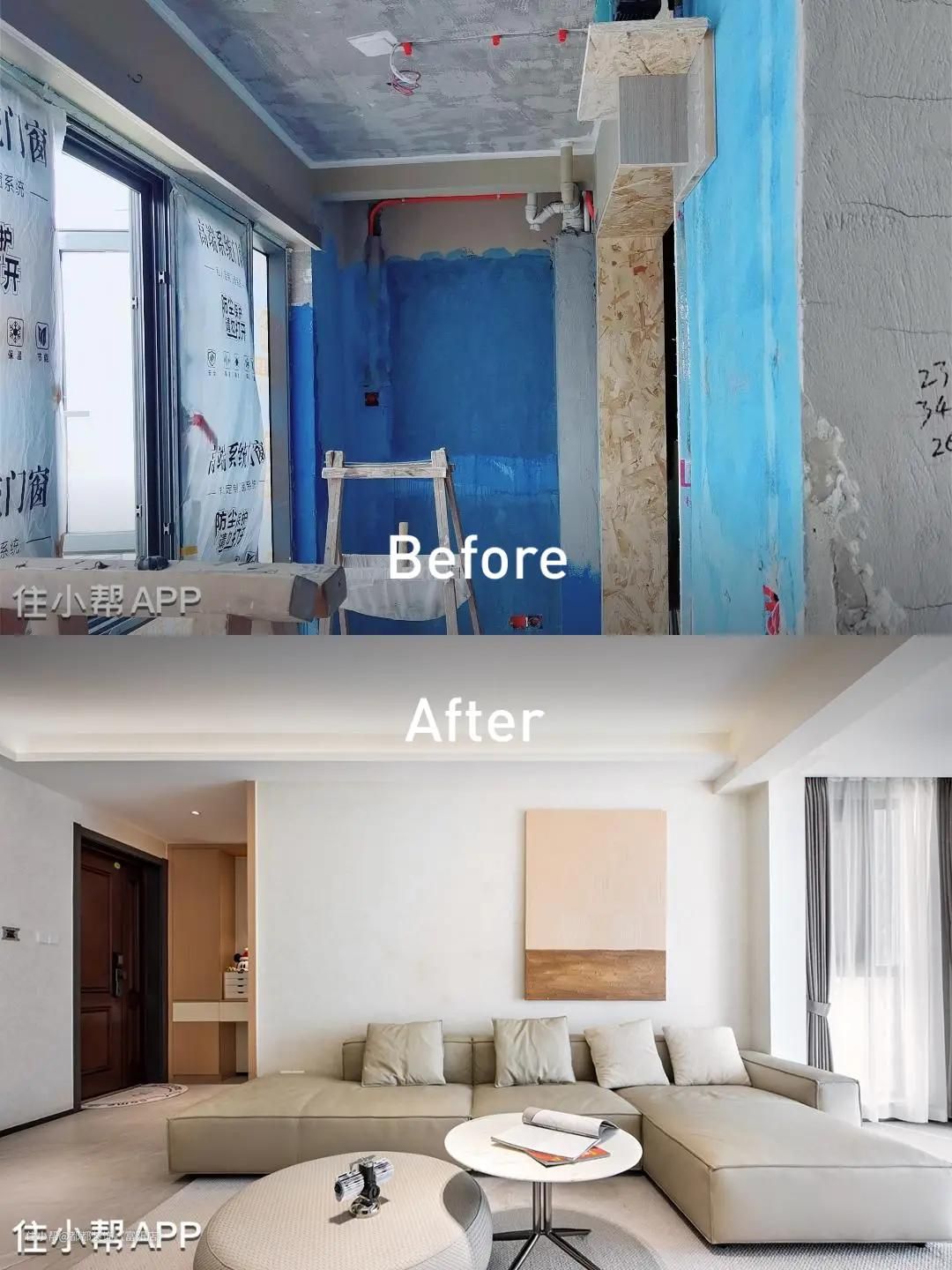 奶油原木风的兴起,似乎也在说明着现在人们内心更加渴望避风港的需求,怎么做才能有温暖的氛围感呢?涂设计师采用柔和明亮的奶油色,为家营造轻盈柔软的感觉,再用木质家具做搭配,轻盈的氛围里又多了一丝回甘。 电视背景墙采用了悬浮墙+白色木格栅设计,纯净的白色从感官上更为温馨,打理也更方便,实现功能与颜值上的相互成全。 仙人掌盆栽和各种造型的花瓶,有效为空间增添装饰细节,让电视柜富有趣味,在灯带的照射下,整个背景墙都亮堂起来。 观影区选用了温柔的浅奶油色系,L型沙发+茶几,围合布局+低重心的方式强化空间包裹感,搭配木色装饰画为空间注入了温暖与柔情,晶晶说每当她回到家里就好像闻到了香草牛奶的香气,一切烦恼就烟消云散了。