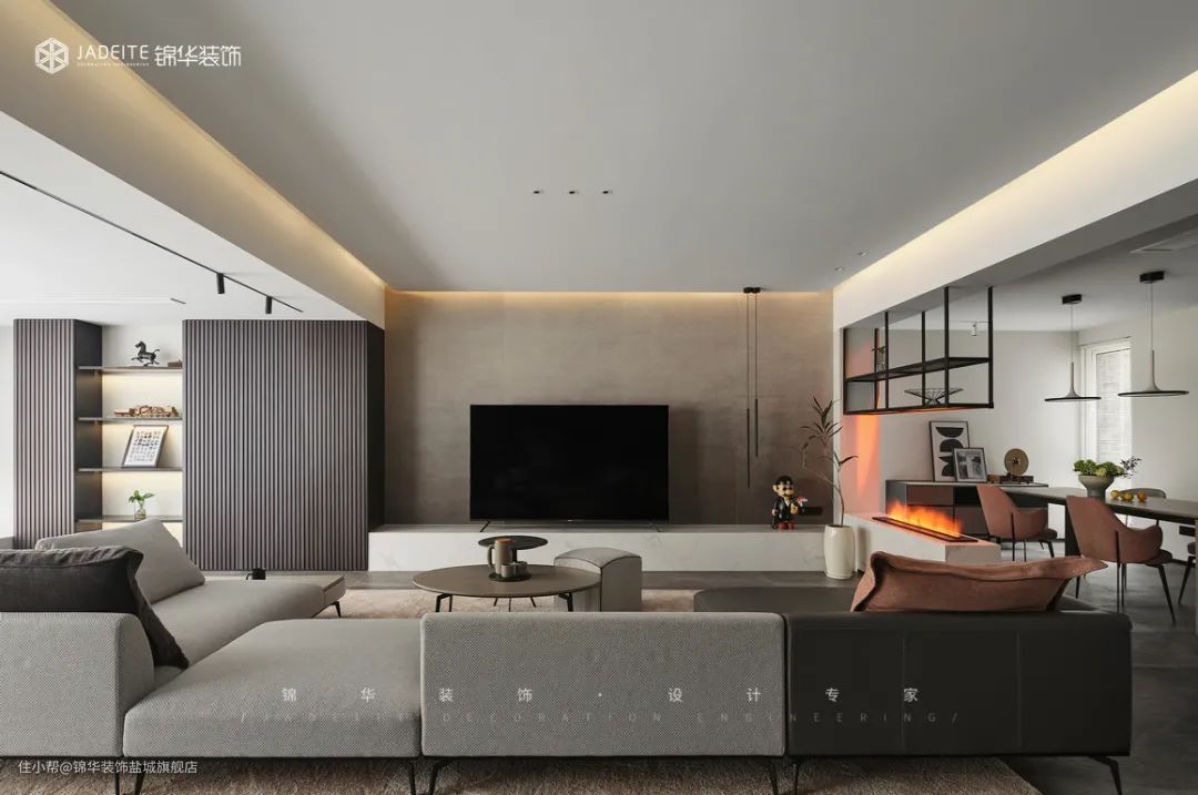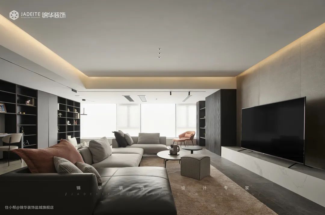 顶面极具张力的黑色线条和暗藏式灯带的应用,使整个空间呈现出纯净、灵动、流畅的简约之美。