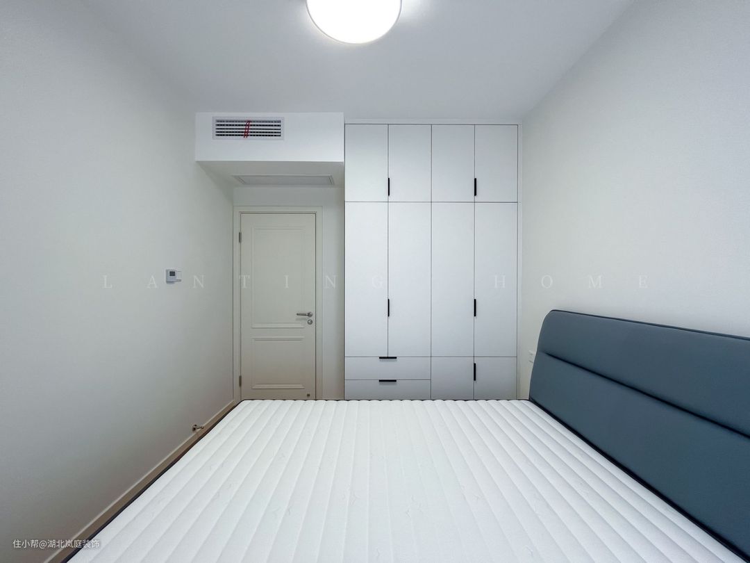 次卧空间相对较小,但功能齐全,定制的衣柜满足收纳需求。在保证居住需求的的同时减少了对整体空间的分割,兼备美观度和功能性。让简约舒适的设计理念贯穿整个空间。 简单的陈设和低调的色彩,给予居住者一个安宁的居家世界,在其中找回生活中最纯粹的本质。