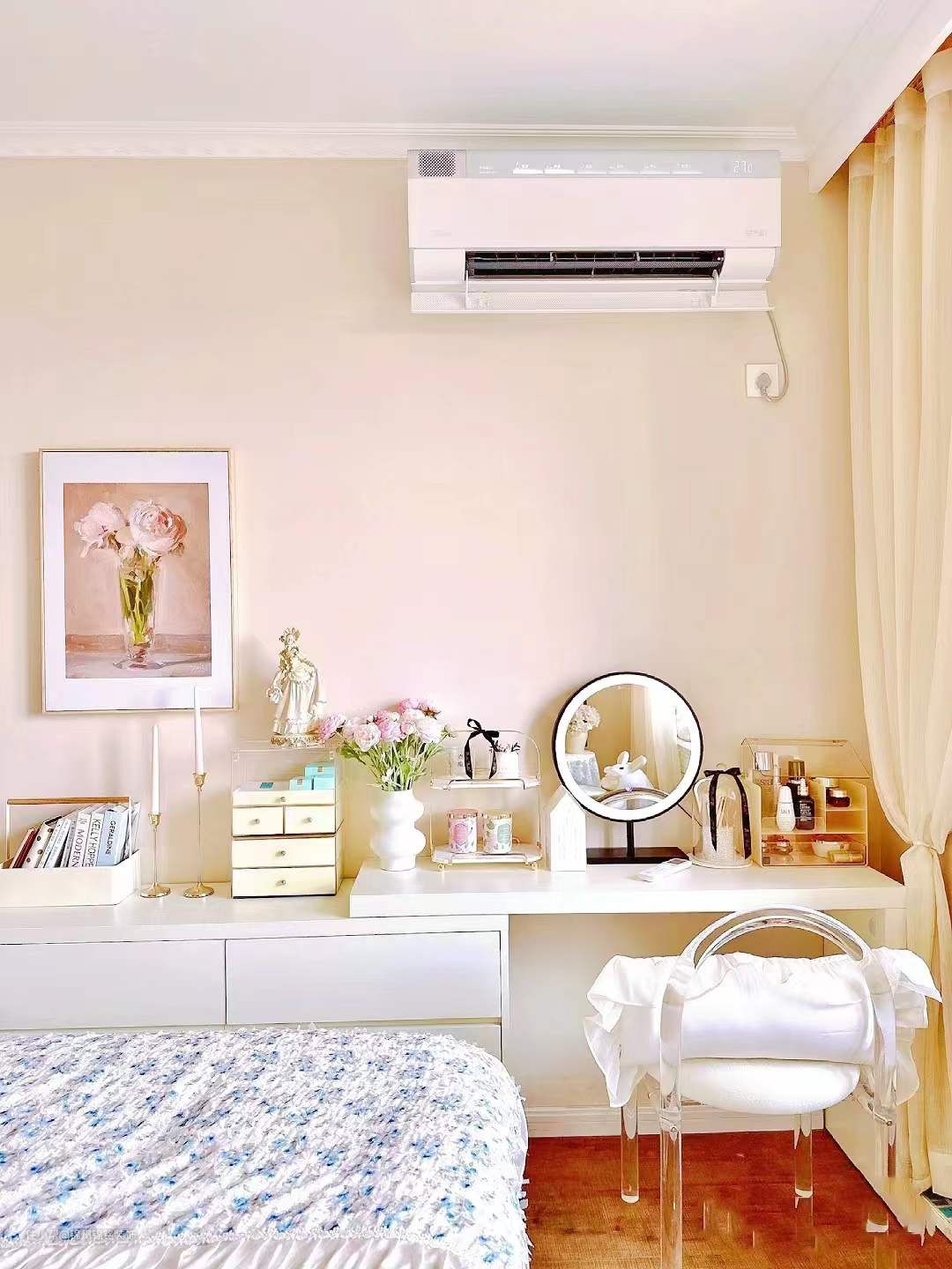 卧室家电,集空调,新风机、空气净化器、加湿器的美的鲜净感空气机,一机多用节省卧室空间,极地白配色和奶油风卧室更搭了,大屏采用可视化操作一目了然。