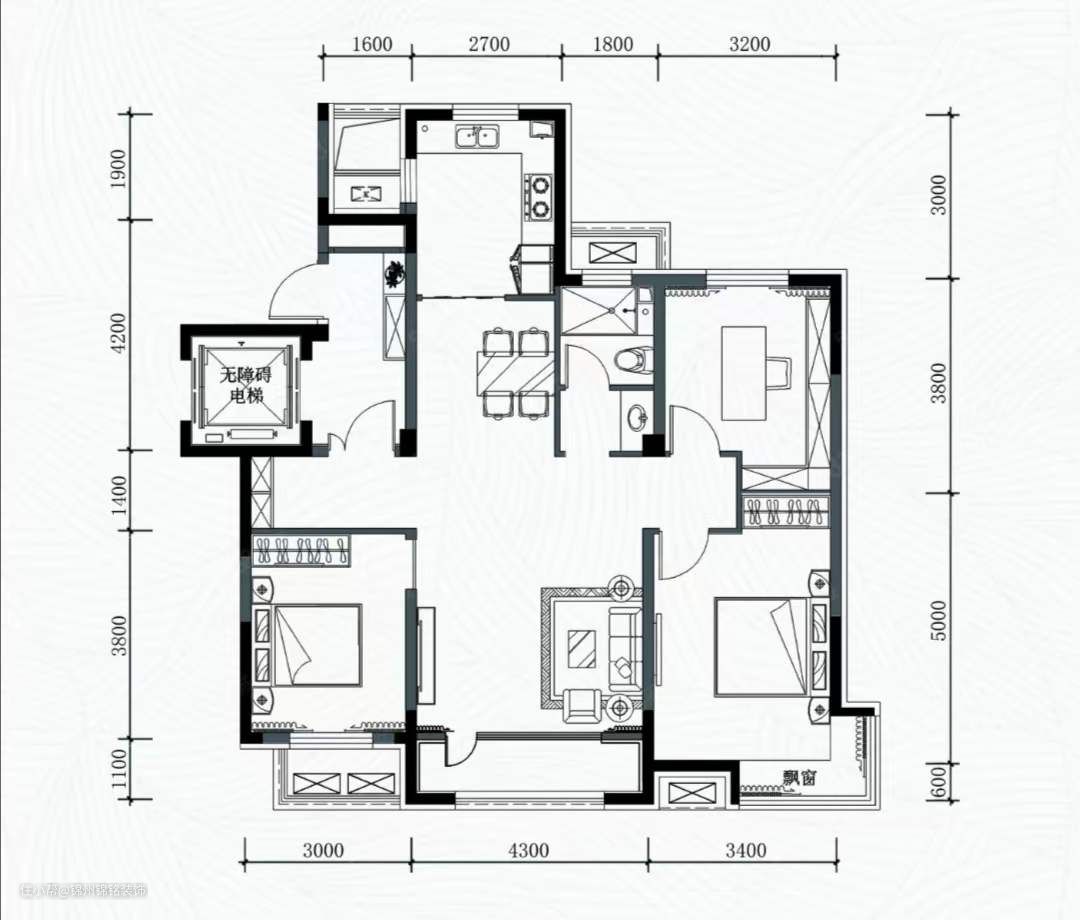 屋主是一对年轻的情侣,打算在今年完婚, 交房后就开始着手寻找合适的设计公司,所以这是一套承载着业主对未来生活期待的婚房。女业主是一个很有想法的人,她希望她的家可以美丽又实用,整个装修下来基本上都是自己做的决定,父母没有插手,老公也很支持。 原始户型:这是一套面积116平方米,三室两厅一卫的户型,原始布局还算规整,所以我们在户型改造上没有做过。多调整,重新规划布局了客卫、走廊以及两间,卧室的空间布局,在更契合业主生活方式、提升居住使用感的基础上,巧妙增加了一定的收纳空间。