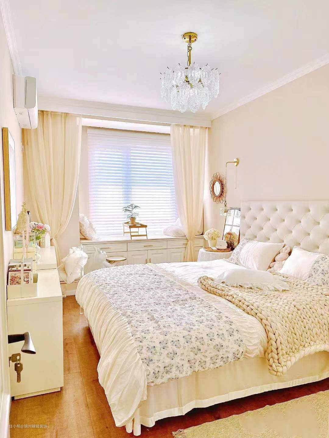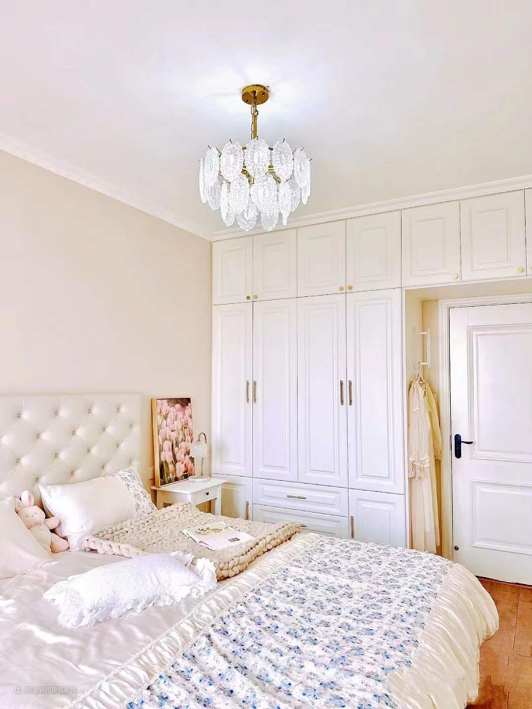 衣柜功能分区好,可以装下一年四季衣物。飘窗砸掉做了飘窗柜,下面储物上面休闲区很惬意。没有选择做吊顶,保持原有的层高,一圈贴了8厘米石膏线,简单又不压抑。