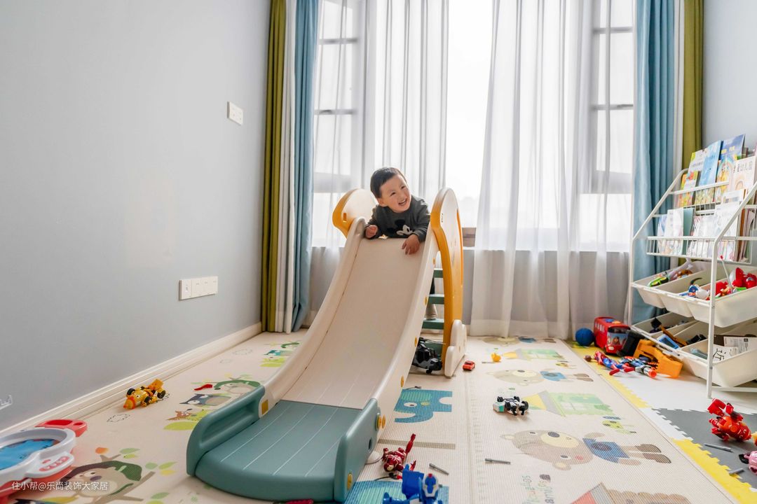 业主家的小孩子非常可爱,喜欢滑梯。设计师设计休闲区,作为孩子的快乐天地~