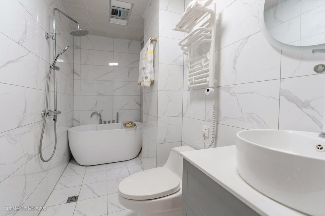 设计师考虑到家里有小孩,没有选择干湿分离,而是采用浴缸和淋浴的设计,小孩的洗澡也会更有乐趣,也更加安全。