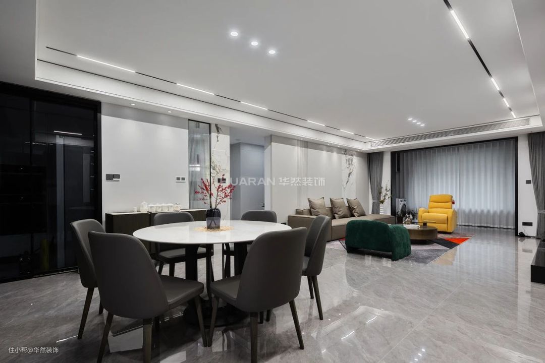 项目信息: 项目地址 / 合肥 金隅南七里澜山园 项目户型 / 大平层 | 四室两厅一厨两卫 项目面积 / 建筑面积155㎡ 项目风格 / 现代风 设计施工 / 安徽华然装饰 客户需求: 卧室不规整且面积不大,需要通过合理的规划,增加休闲区并完善收纳储物功能; 餐厅区域已经足够宽敞,再保留进入卧室的过道,则空间太过浪费; 厨房面积小,容纳诸多的家用电器后,空间局促且不方便做饭; 家里常住人员是一家三口,只要保留2个卫生间,就可以满足日常生活所需。 设计亮点: 门厅转角处的非承重墙体拆除,做成半通透,增加门厅采光和跟客餐厅互动; 南次卧门洞向后推移,以削弱玄关门厅的逼仄感; 把主卧和北次卧的露台现浇起来,纳入室内,使得空间更加开阔,也增加了很多休闲的空间; 客卫干区改造,通过长虹玻璃隔断和防水艺术漆的处理,让干区跟客厅衔接起来的同时增加干区的采光; 打通阳台,分别扩入客厅和书房,增大面积的同时,空间更通透采光更好; 拆除与餐厅相邻的非承重墙体,做玻璃推拉门,并将设备平台融进室内,让原本拥挤的厨房更明亮开阔。