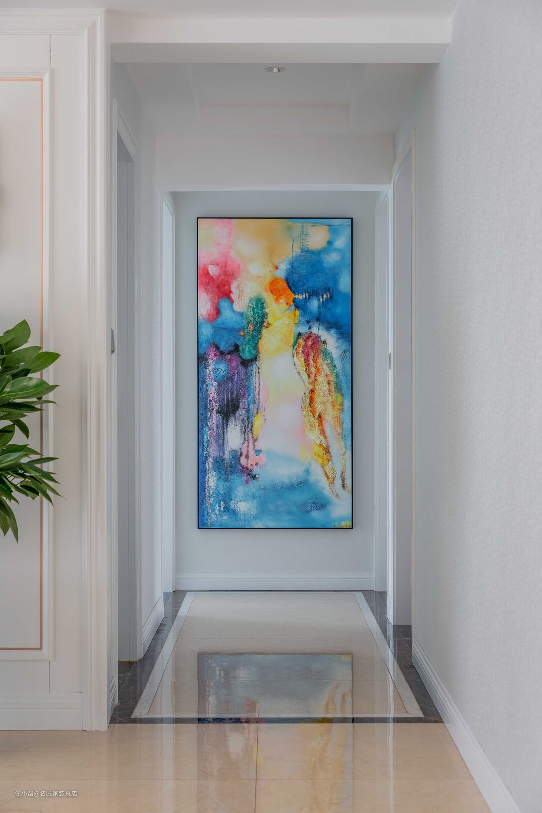 沿用整体素净的主体,以彩色泼墨挂画装点。