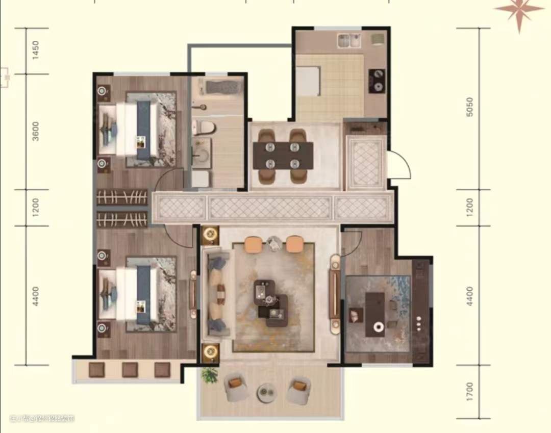 115㎡的简约风,三居室的奶油系,简约温馨。