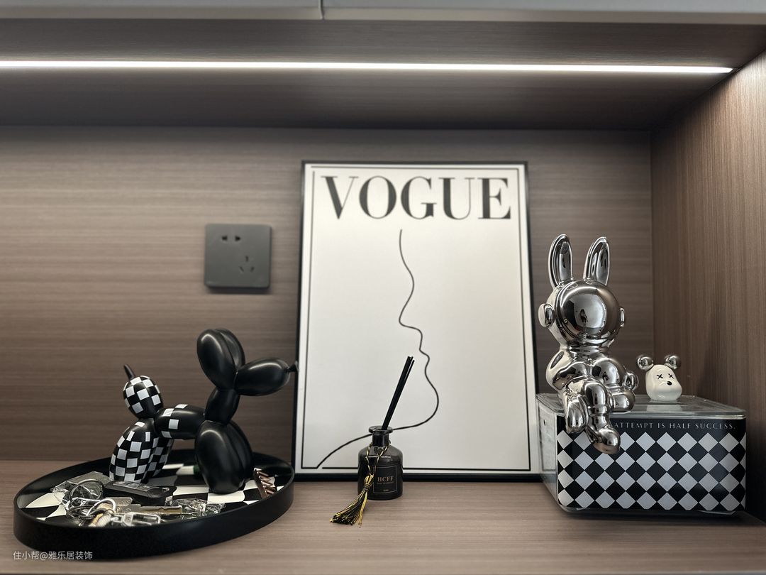 浅色系的家具在视觉上让空间更显大同时也更加透亮,挂画和精致的小摆件是增添空间氛围感的神器哦~