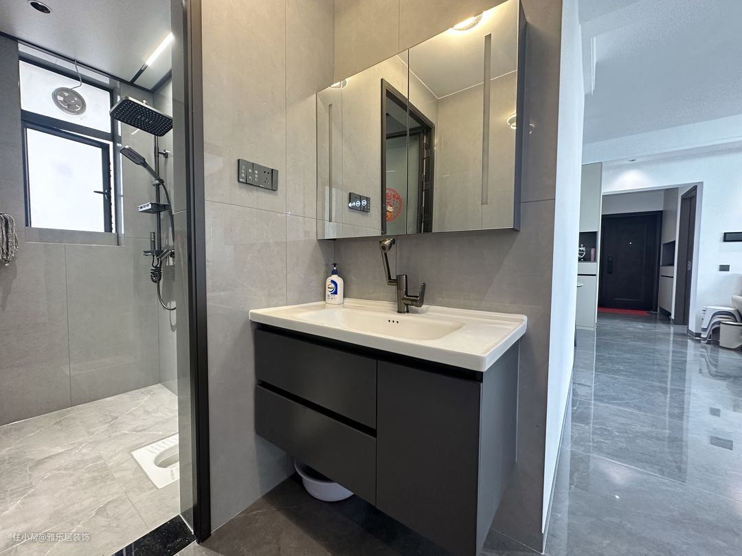 黑白灰奠定空间的基调,整体设计都围绕着“简单有温度的风格”来打造,灰色地砖通铺,简约色彩形成松弛自然的居住环境。主灯+走边筒灯照明、氛围都能满足,这种灯光搭配也更适合家里有长辈和儿童的家庭。