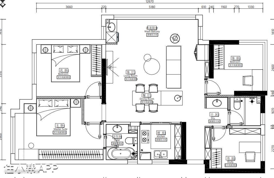 原来客厅过小,无法满足客厅餐厅以及吧台的需求,所以把阳台直接打通包进客厅。阳台多种花砖拼接,引春入屋,步步生花。