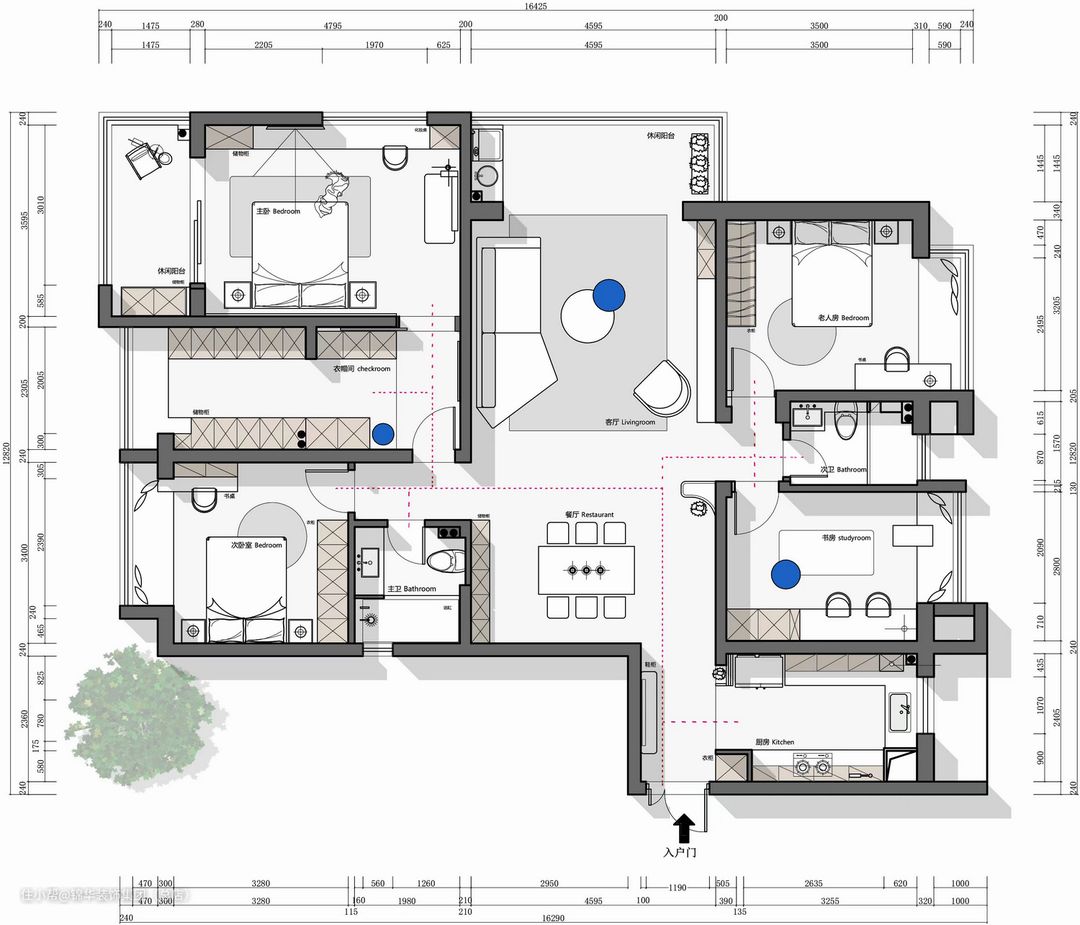 客餐厅为中轴线,左右动静分区,动线明确,作为婚房,鉴于未来生活动向规划,整体的格局没有改动太多,三房,加上一个独有的办公区域(书房)。 沟通设计的过程中,聊的不是简单房子的拆改装,其实更多的是他们对于家的畅想,而对于我来说,用专业切入,从硬装到后期软装部分,一步一步落实的是他们心目中--可以依靠的地方。