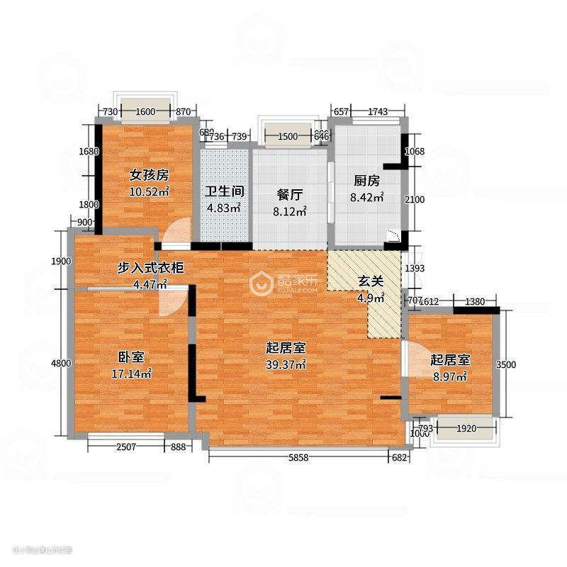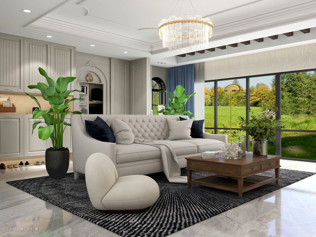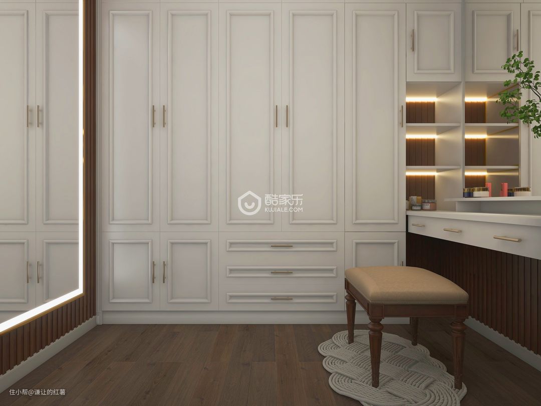 全屋概览本案以美式经典+田园风格为基底,功能规划上打造出全功能私宅,着重区分公共空间和私享空间,处处令人愉悦。全家齐乐的公共空间、女主人专属步入式衣帽间、男主人专属经典美式书房、女孩子专属甜美女儿房。起居室卧室女孩房厨房餐厅玄关卫生间步入式衣柜