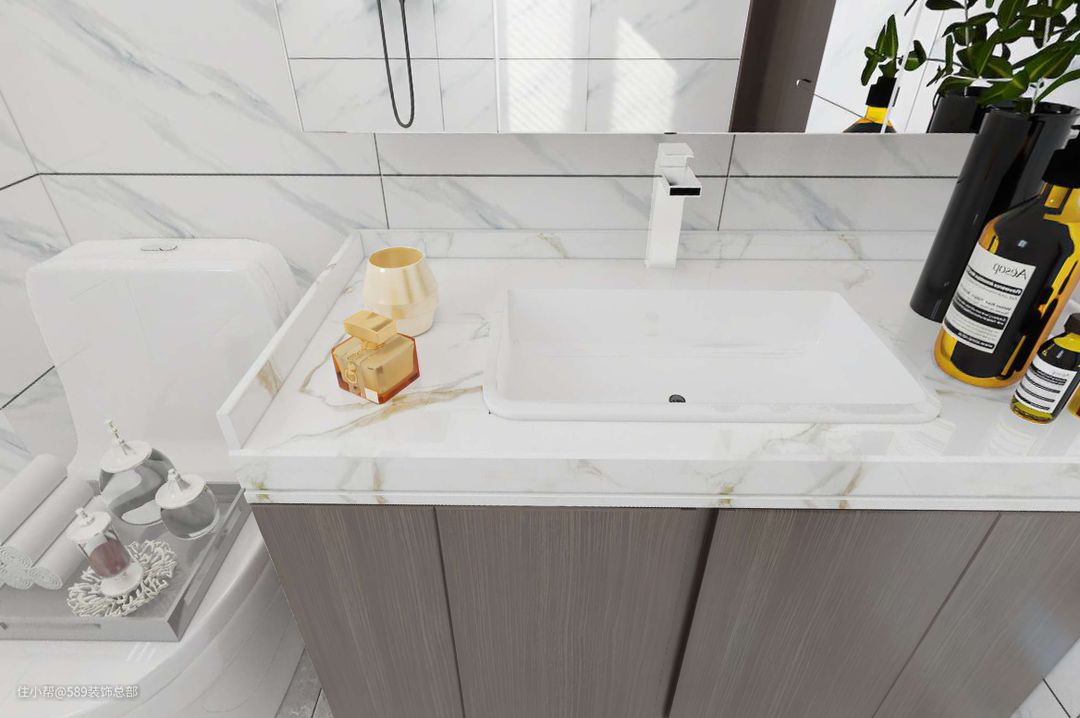 卫生间墙地面贴瓷砖,整体通透,有窗户,采光通风方面没有问题; 洗漱盆选择台下盆,大理石的材质,日常清理方便;