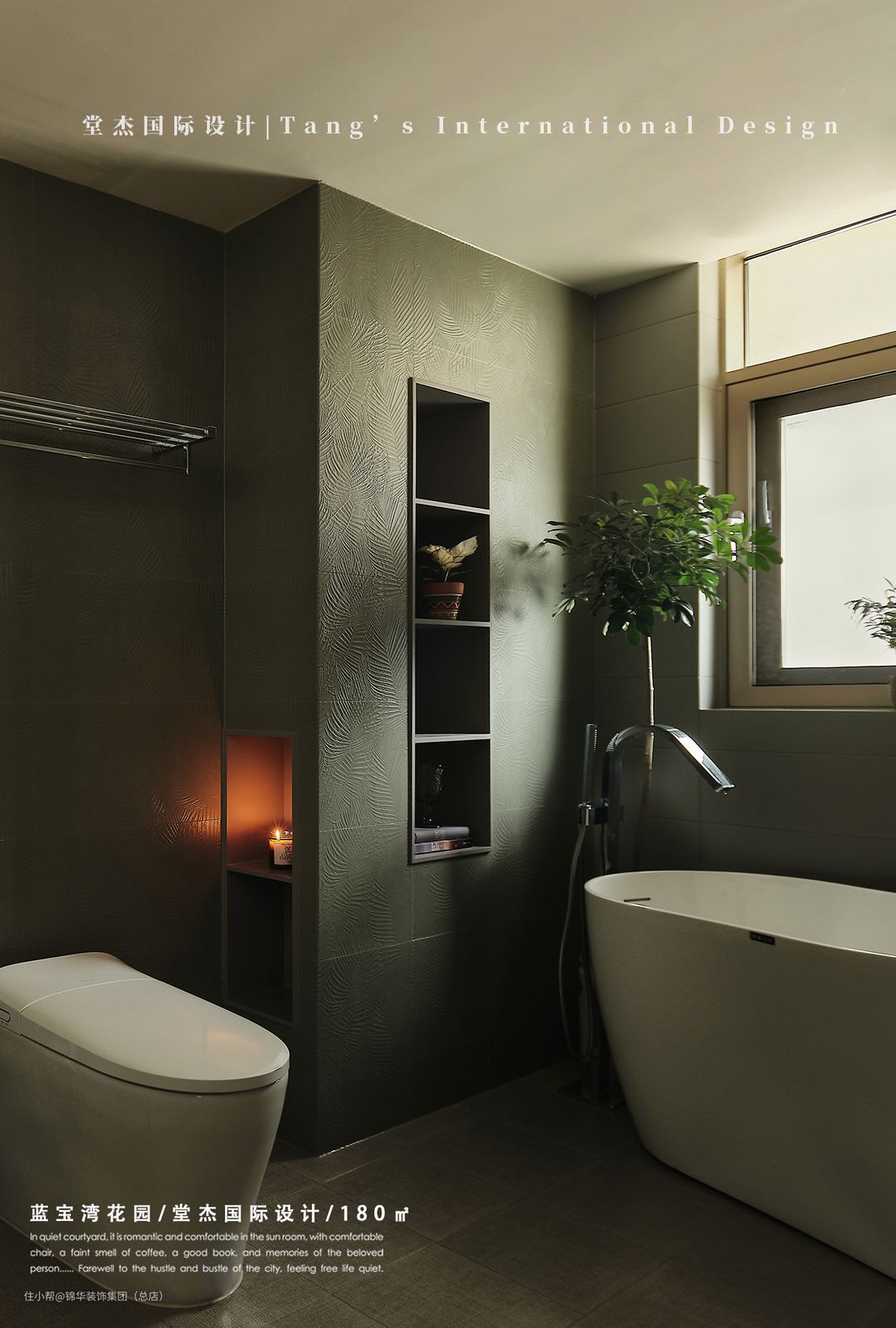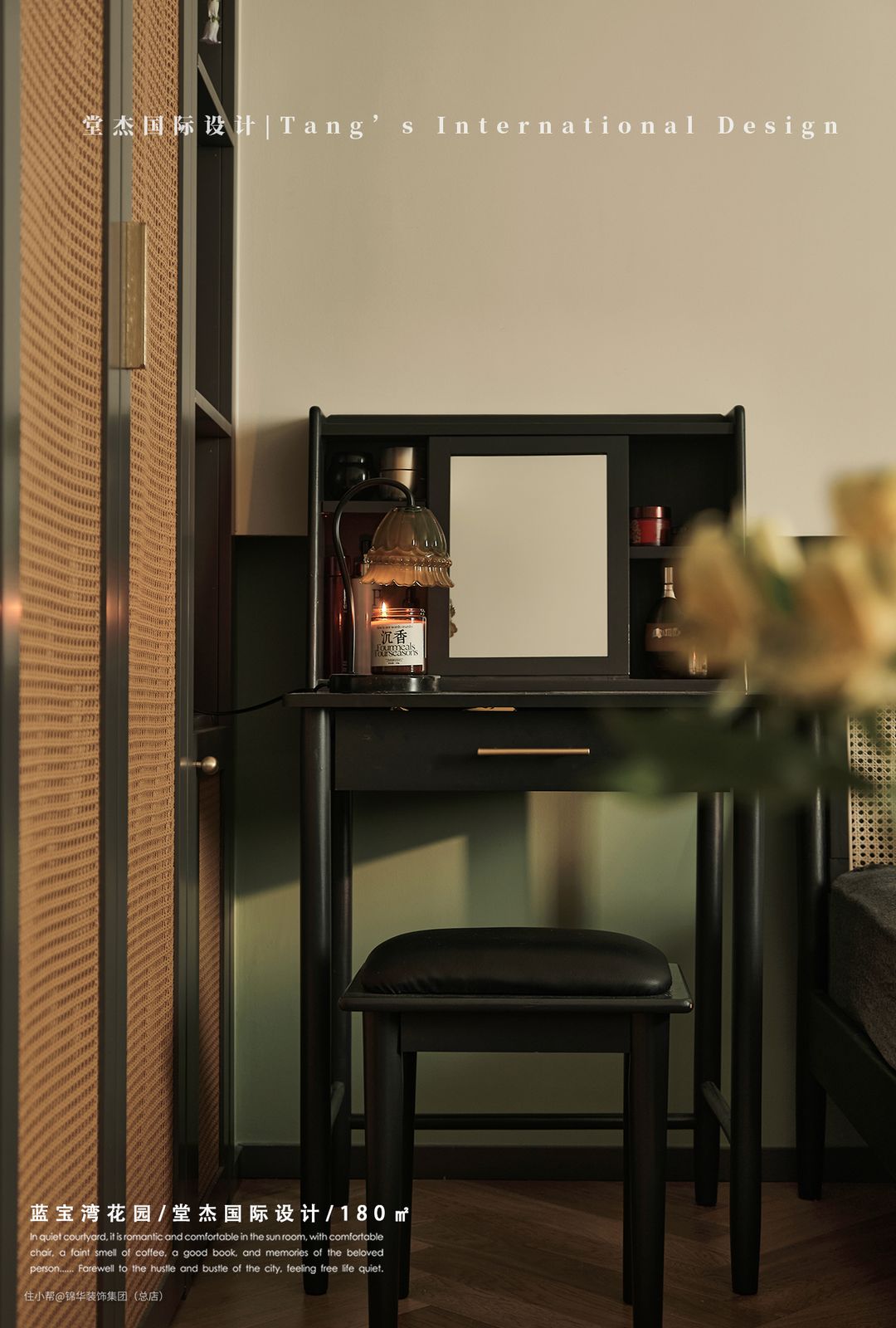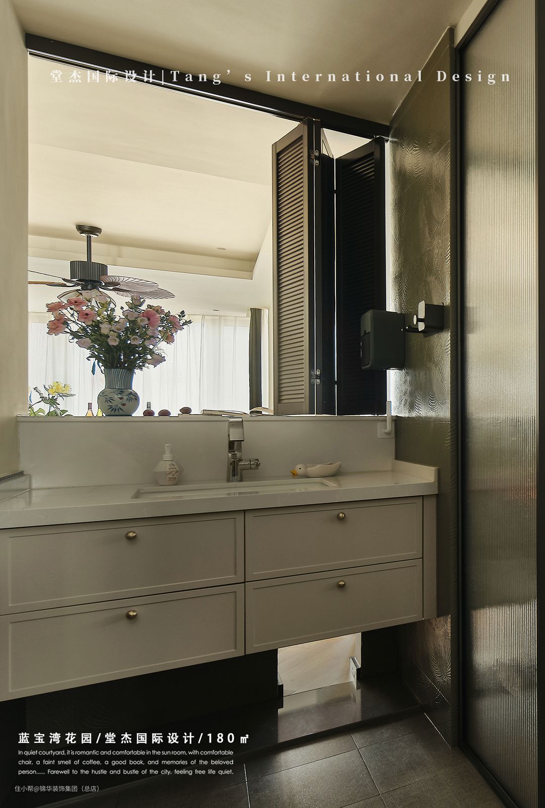 主卫浴室部分每处细节都定义了一个空间的结构,配上昏暗的烛光,电影氛围拉满,还增加了视觉层次感,空间没有单一的焦点而是每个角度都具观赏性和连续性。而且浴室墙上还做了深色壁龛,方便泡澡时放东西,实用性也极大提高。 跟随着整体风格走,这部分加入百叶窗增加透气性,以白色大理石做一体式洗手台,下方打造储物空间,满足浴室基本收纳需求,而且浴室区采用玻璃隔断的设计以达到干湿分离。 项目风格:南洋复古 项目地址:南京-蓝宝湾花园 项目面积:180㎡