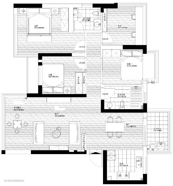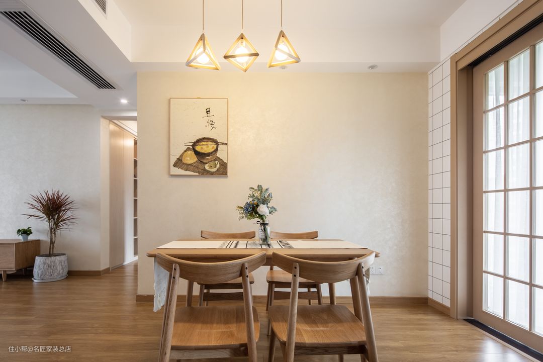 温柔娴静的女主人找到设计师的时候,第一句话就说“我要做日式风格的家”,这缘自于她曾经的一次日本旅行,她说在京都看樱花的那一回,日式风格的一切事物给了她最美好的印象,当时的她和他都很年轻,看着樱花扑的簌簌地落在街道,落在水涧,落在建筑物,甚至从窗口飘进来的时候,她觉得那是最一生里最美的时光。于是在她和他组成幸福的家庭后,她想把家居设计成日式风格,以留住这一生的美好。
