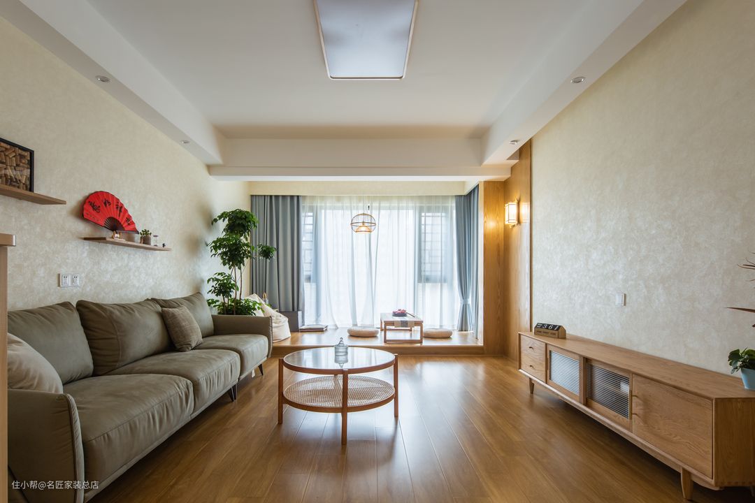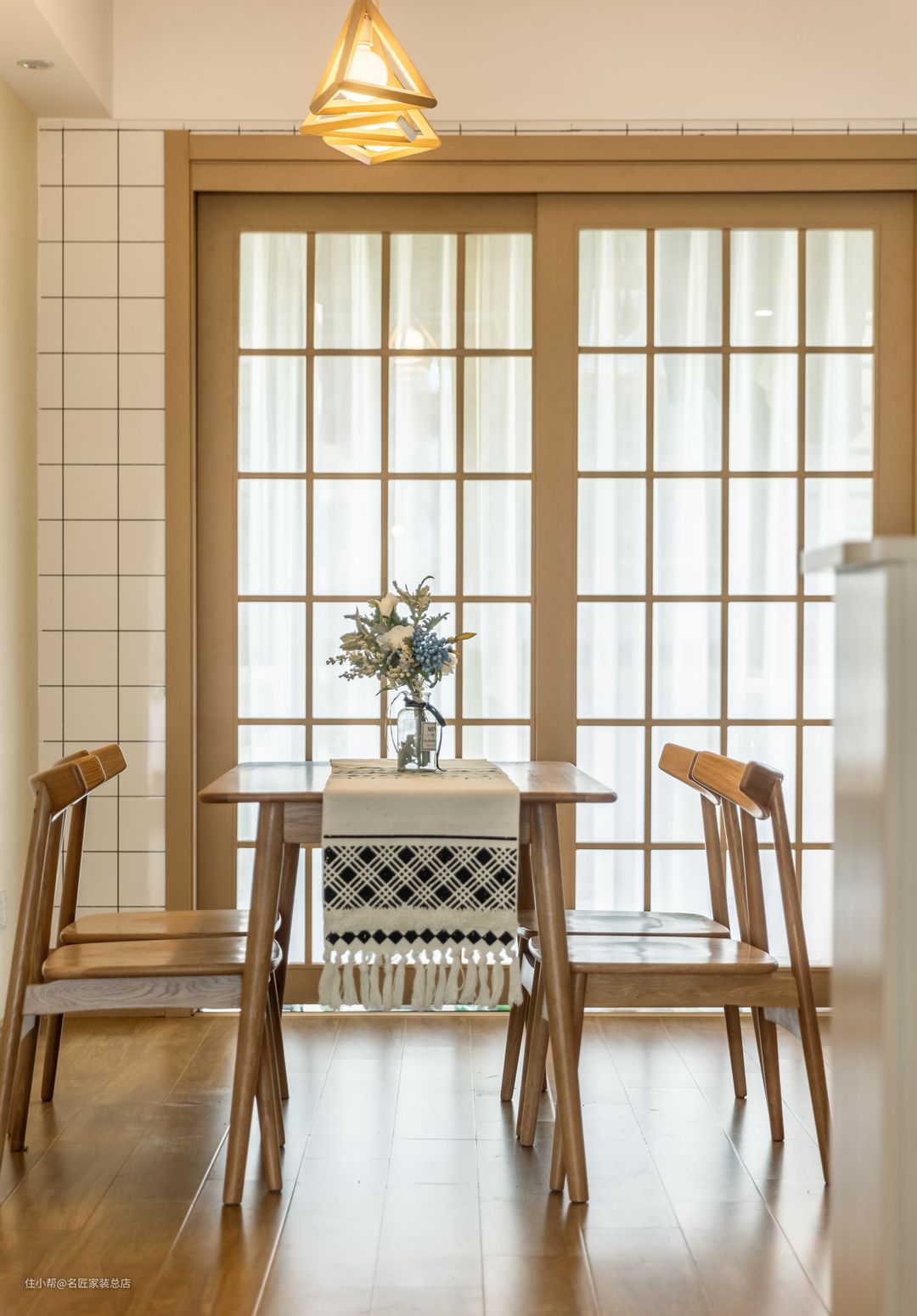 日式风格的家居,以木色和白色来定义整个空间的基调。阳台客厅相连,并做了阳台的抬高处理,窗外风景一览无余,加上阳光的衬托,闲逸的午后在这里沐浴阳光,养养花,品品茶,喝喝咖啡,享受每一个慵懒、悠闲的假日。