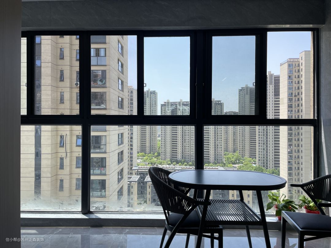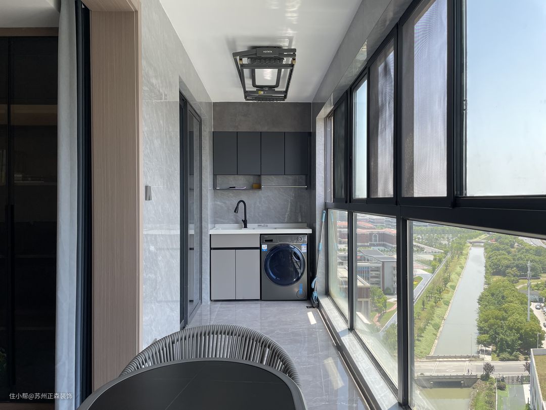 阳台 在阳台的一侧设计了悬挂式的收纳柜,既美观又实用,在阳台的一侧还设计了一人的休闲区,搭配上大落地窗的设计,增加了整个空间的舒适度和明亮度。