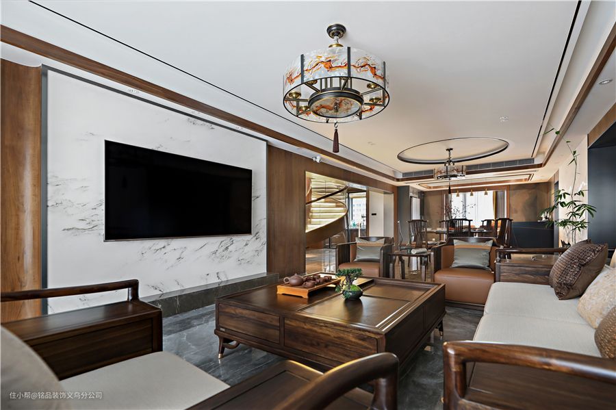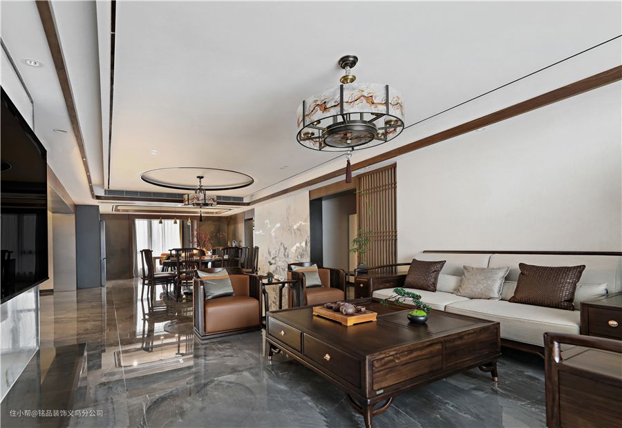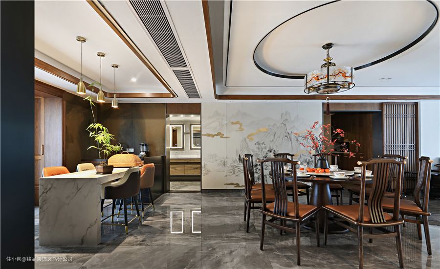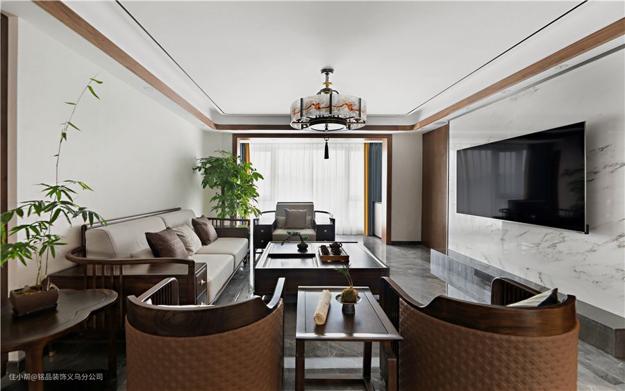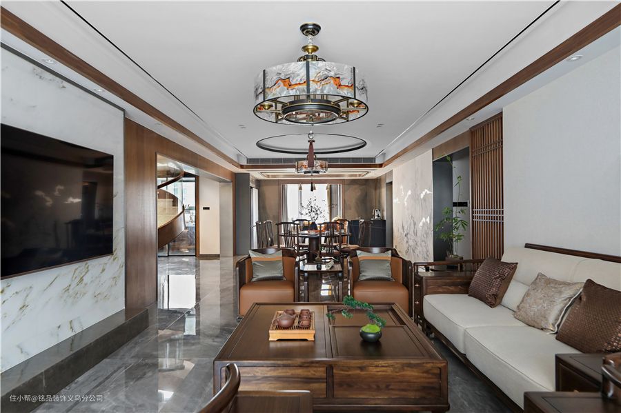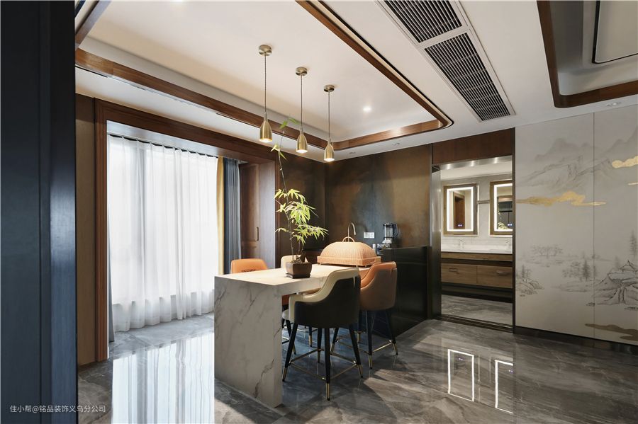 竹影疏斜,松韵澹雅,对客厅的设计,我们将新中式设计做到了极致,沉木色调搭配欣然生长的绿植风雅,呼应着传统东方的灵韵之美。流畅光洁的大理石设计,勾勒出更简约清爽的视觉空间。浅色格调,糅合中式儒雅,带来更舒适的生活体验。品茗阅卷,工笔端庄,内心感知到的是古色古香里的淡泊宁静。