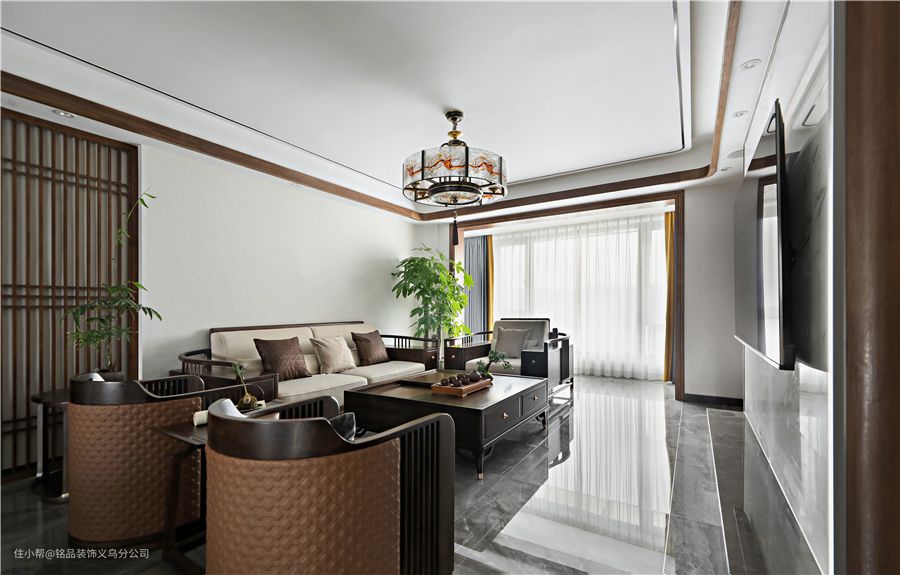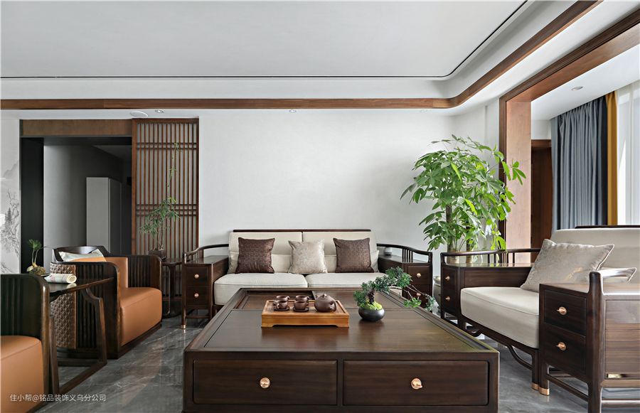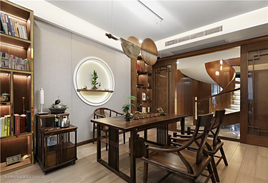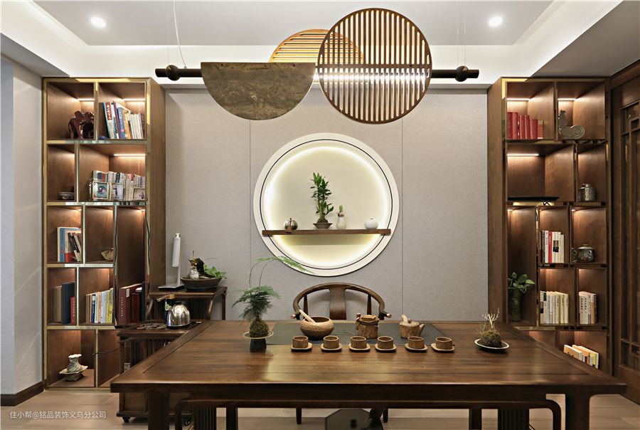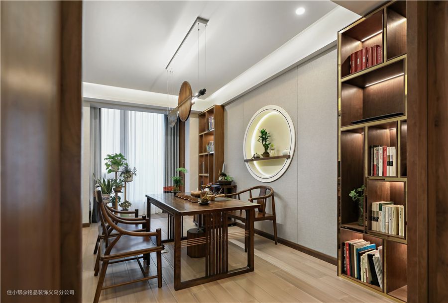 谈到中国传统文化,朱女士的眼里就会泛起流光溢彩,源于对传统文化的深深喜爱,朱女士选择了成为一名教师工作者。 春花、秋月、夏蝉、冬雪……中国传统文化里的诗情画意绵绵不绝,自小陶冶着她的性情,她喜欢东方传统文化里的浪漫意境,含蓄内敛,雅致清幽,有高山流水的高洁,亦有焚香煮茶的淡泊。 地址 | Addr:金苑大厦 风格 | Style:新中式 面积 | Size :360㎡ 与朱女士的相识,结缘于一场艺术展览,谈吐雅致的朱女士在艺术设计上亦有许多独到的见解,令人耳目一新。她与先生都是传统文化的爱好者,先生品茶,习书法,而她则喜爱阅读文学,两人琴瑟相合,感情融洽。 在展览结束后,朱女士的先生提议将他们在萧山的新房交由我们装修,他们期待能有一座雅致小筑。正所谓,大隐隐于市,在车水马龙的快节奏都市里,拥有一处典雅居室,这不是一件令人深感幸福的事吗? 对于这一请求,我们也乐于相助,开启合作后,我们就对新居室展开了测量改造,在整体布局上进行了规划设计,这套户型方正,很有特点,因此从户型结构入手,我们结合了中国风水方位的布局设计,对新居室有了一个崭新而全面的设计。