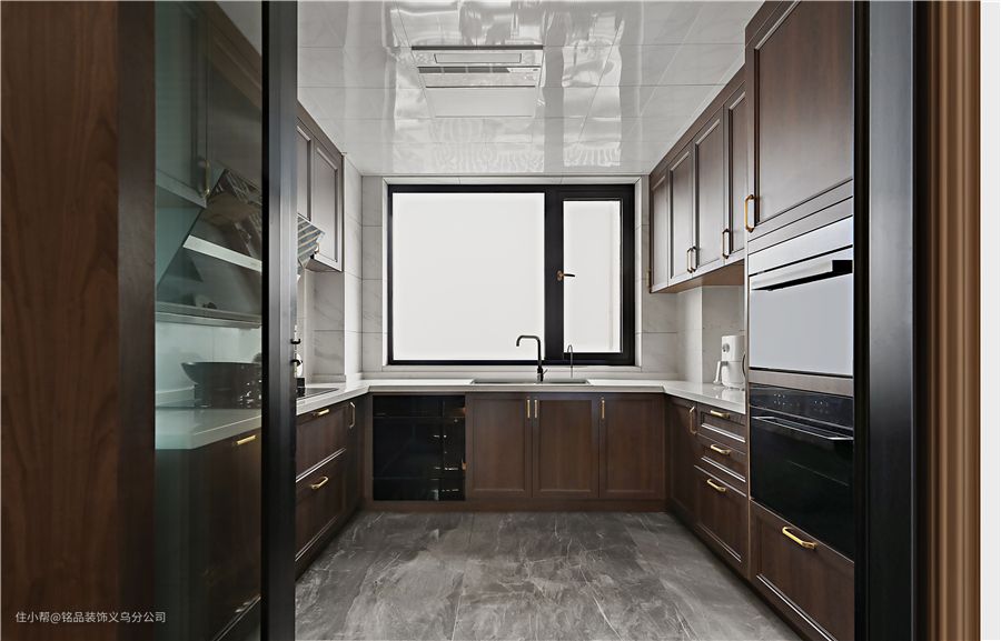 步入厨房,能感受到现代科技工艺与传统艺术的融合,嵌入式的设计令空间感更宽裕,厨电的存置不再是负担。我们将厨房空间设计为“U”字型的动线布局,半开放式的设计,让厨房这处空间的采光效果更好,光线更通透。精装定制的木柜,细节感满满,惊艳品质,令人赞叹。