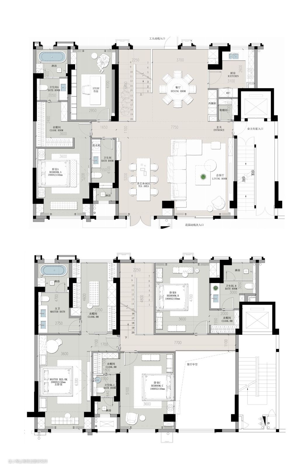 前言: 该项目是一套复式结构别墅,户主是一对文雅有爱的新婚小夫妻。对于整个空间他们希望能够体现出简约和大气的感觉,希望通过设计来赋予空间更多的生活气息、层次感以及实用性。 通过实地考察分析,在和户主商讨过后决定不对墙体进行过多拆改,着重于对整个空间的色彩分布、收纳处理以及整体的设计感方面进行调整,致力于通过合理的设计搭配让整个居室空间更富活力与生气。 屋主诉求: 1、进门玄关处希望能够合理规划、利用,希望在玄关处增设一处鞋帽间用来更好的存放衣物。 2、希望在楼梯区域加设一处小景观区,让居室内多一些自然的绿意。 3、考虑到日后可能的需求,希望几个房间都有较强的收纳功能。而且女主人平时比较喜欢泡药浴,所以在主卫加装浴缸。 4、男主人擅长茶道,平时喜欢约几个朋友一同品茶聊天所以希望能设置一个专用来品茶论道的区域。