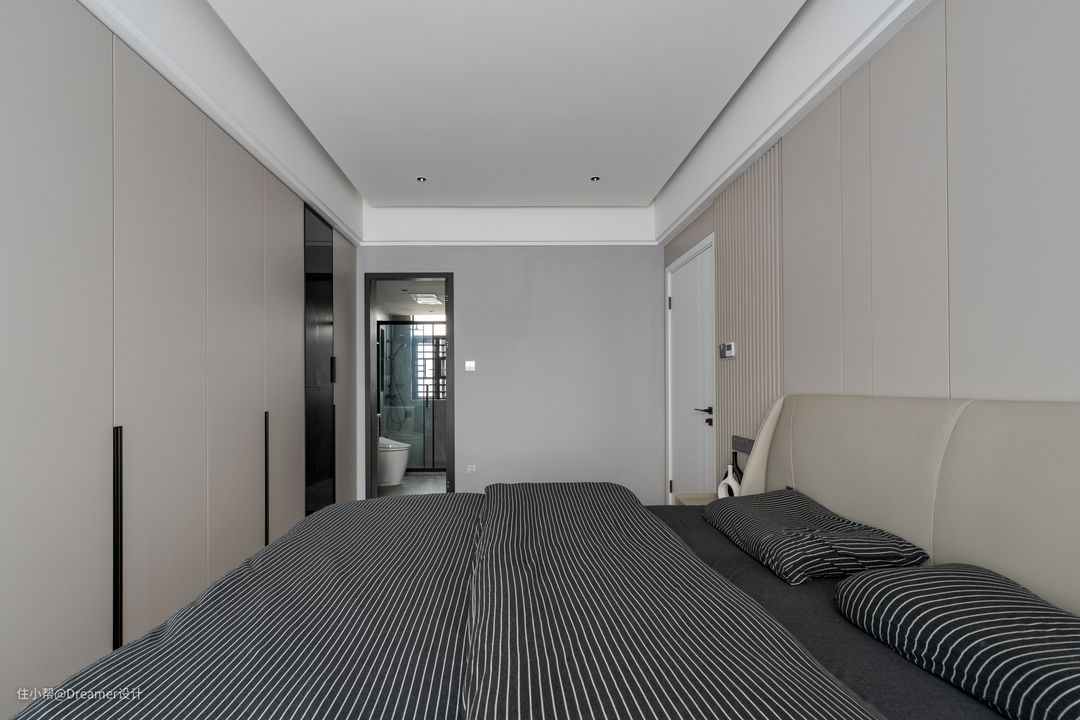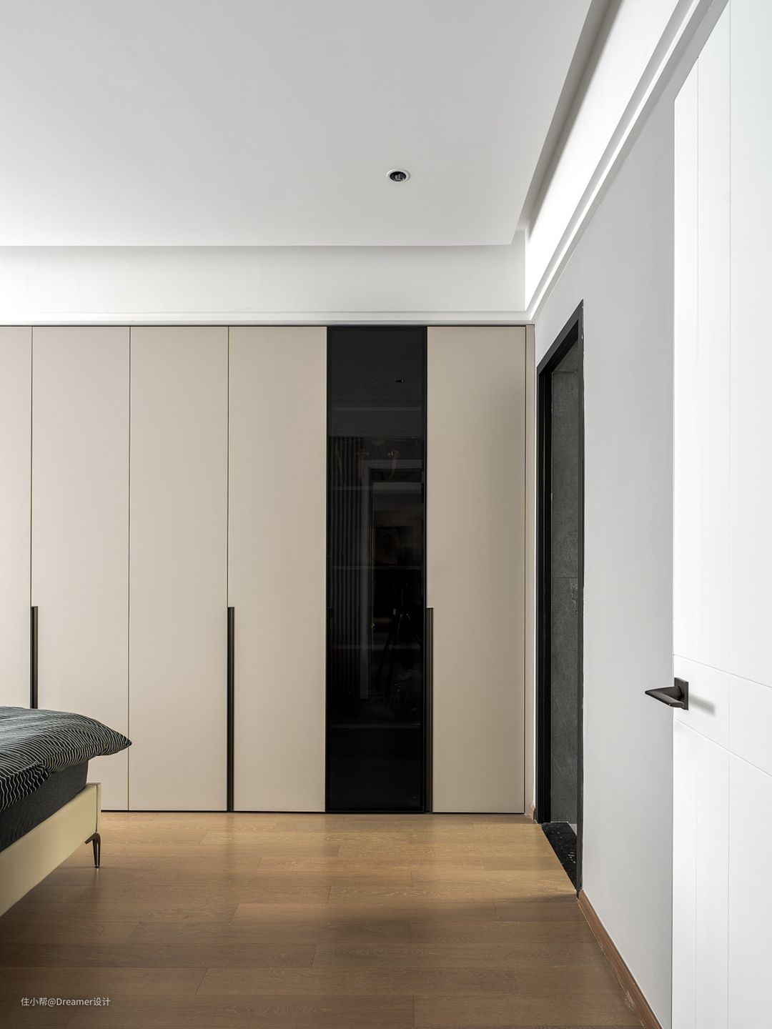 顶面、墙面、软装不同层次的白,加入黑色元素点缀,既简单又高级。 #衣柜#配色