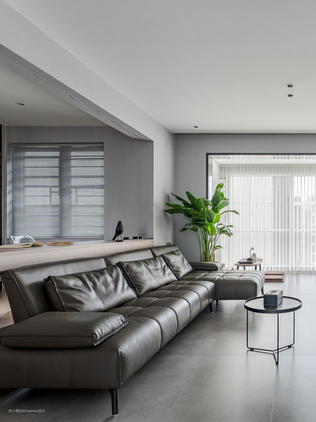 阳台的竖百叶清爽灵动,比传统布艺窗帘轻盈大气,更好的室外自然光线引入室内。黑色的不锈钢门套垭口联通了客厅与阳台,空间更显大。 #阳台#窗帘