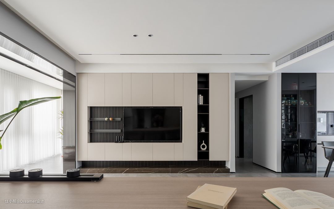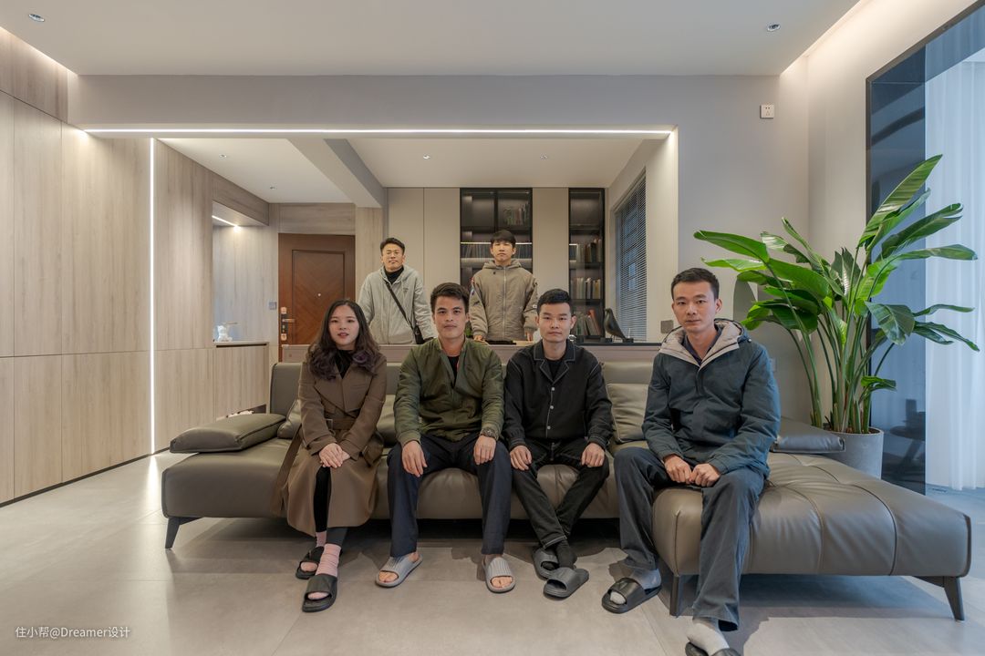 家不需要太过于繁杂的设计,温润的木质元素,暖色的无主灯设计,简简单单的就很温馨。 本案是一套异地对接设计,业主李先生长期在外出差,在当地工作地方看了很多设计案例,最终找到了我们,预约线上会议沟通,经过愉快的线上洽谈后确定将设计任务交给我们,现场勘查,对接需求,经过沟通明确设计方向。 业主目前是一家五口,男女主人、小女孩、长辈父母,未来计划二胎。男女主人均为在政府机关公务员,平时女主人喜欢看书,男主人喜欢喝茶,注重小孩教育,希望小孩从小养成阅读的习惯,就在客厅打造书吧营造阅读氛围。 同时需要亲子活动空间,又因阳台能看到部分江景,设计的时考虑到喝茶,亲子活动和江景的关系,就把休闲阳台与生活阳台分开来。 因为没有定期断舍离的习惯,有收纳的爱好,所以对客厅、卧室设计了一排排收纳柜。 生活是自己的,住得舒服最实在。