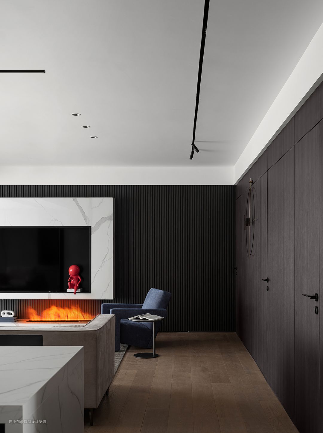 浅色调以哑光质感描摹简约格调,注入石材的温润气质,碰撞跃动的火光,更为强烈地烘托起温馨而居的生活场景。穿插布艺的柔软感,以冷暖色温悄然合围出整体空间的形态,舒缓肌理平衡了跳色的热情,塑造出恰到好处的艺术气质。