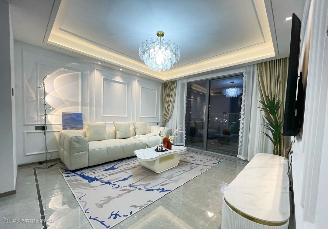 客厅和阳台之间用玻璃门隔断,既不影响室内采光,又很好地隔绝了外界噪音。阳台没有做封窗,视野更开阔。