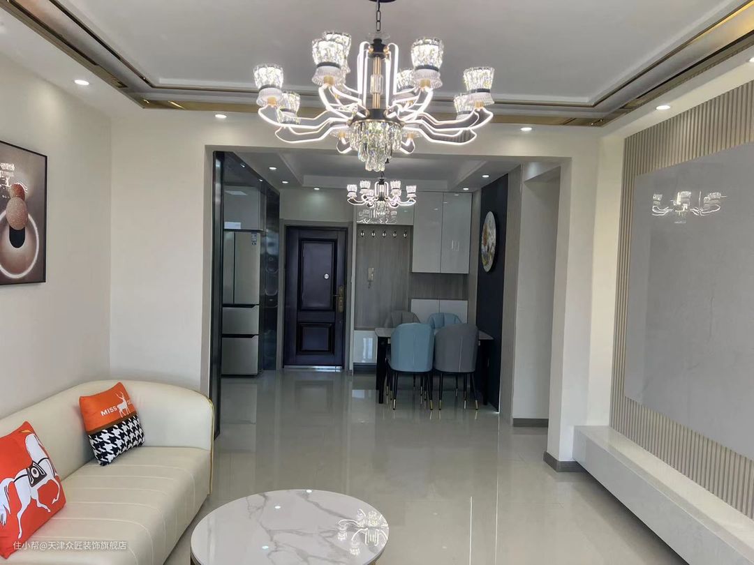 客厅面积有限,简约舒适的布置为主,有氛围感。