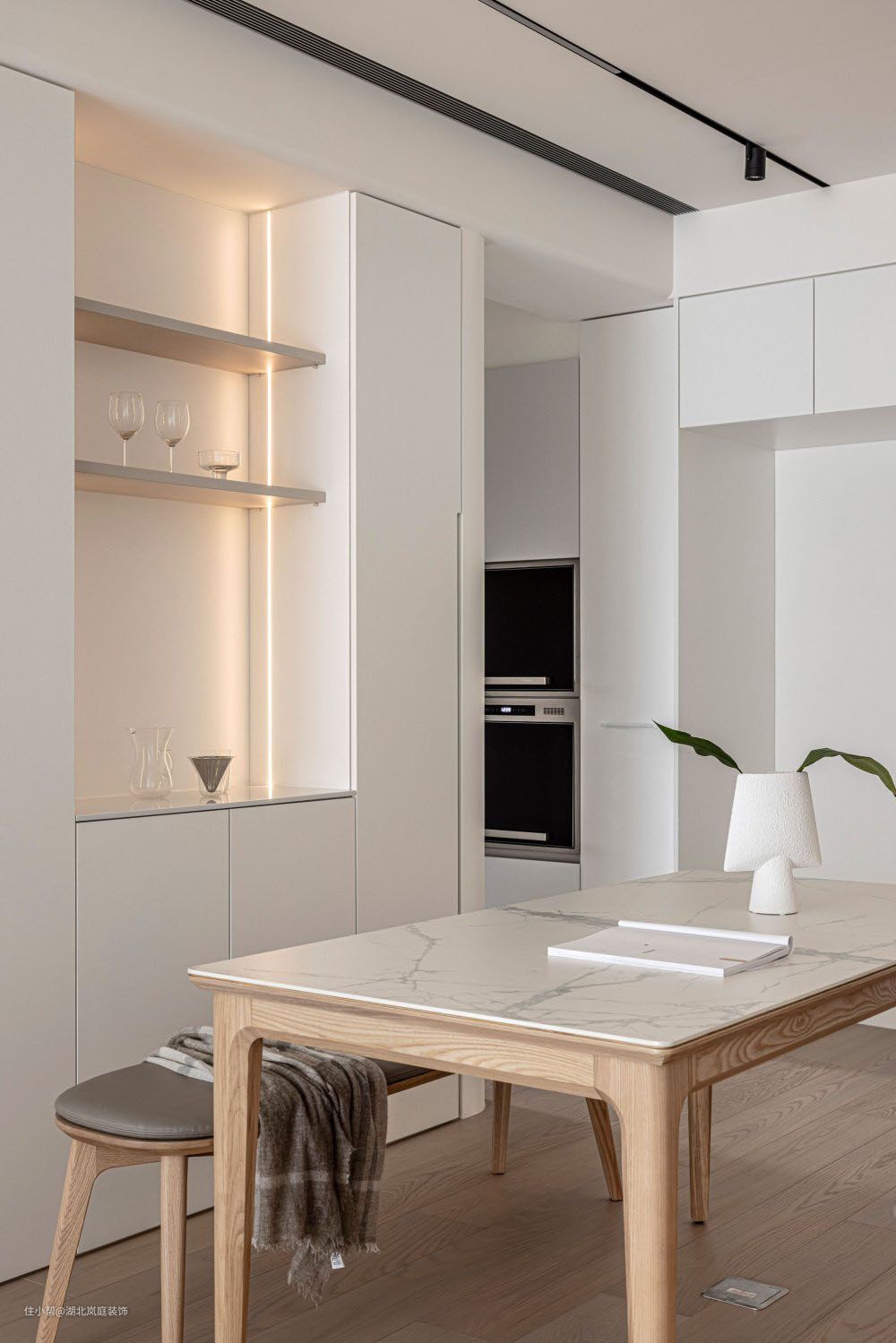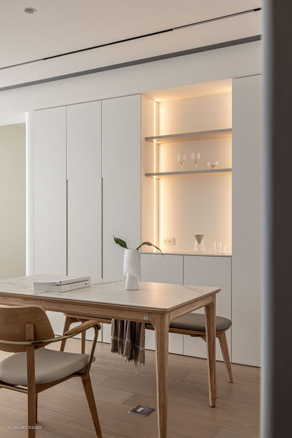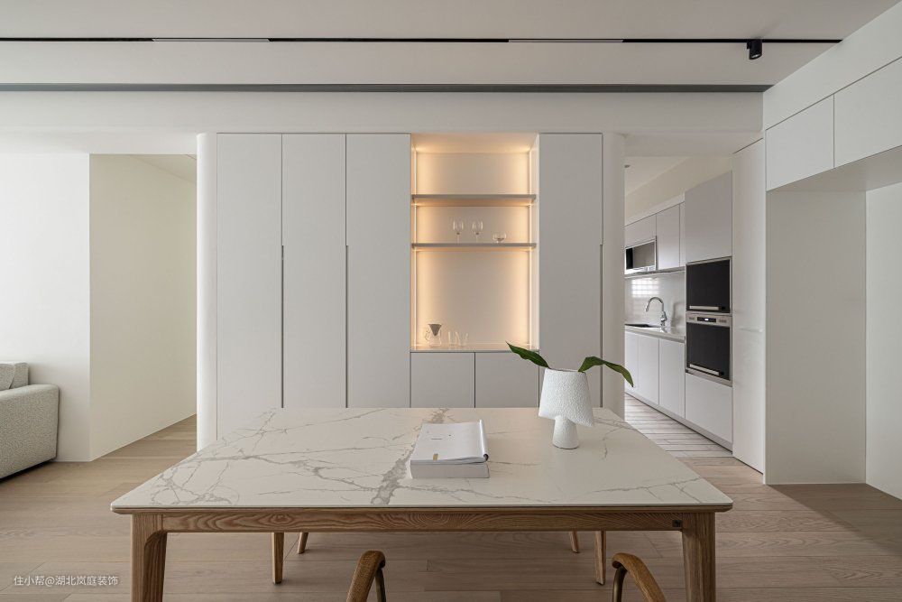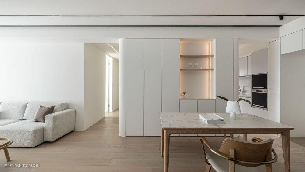 纯净白与原木色打造温暖治愈的空间。用浅色基调衬托物件的精致感,化繁为简,恰到好处的清欢,才是生命的诗意。 整体白色为主,混搭原木软装,在清淡之间呈现出软糯的温柔质感,透出优雅恬静的空间魅力。所谓“清水出芙蓉,天然去雕饰”说的就是这种浑然天成的、自然的、装饰美感。