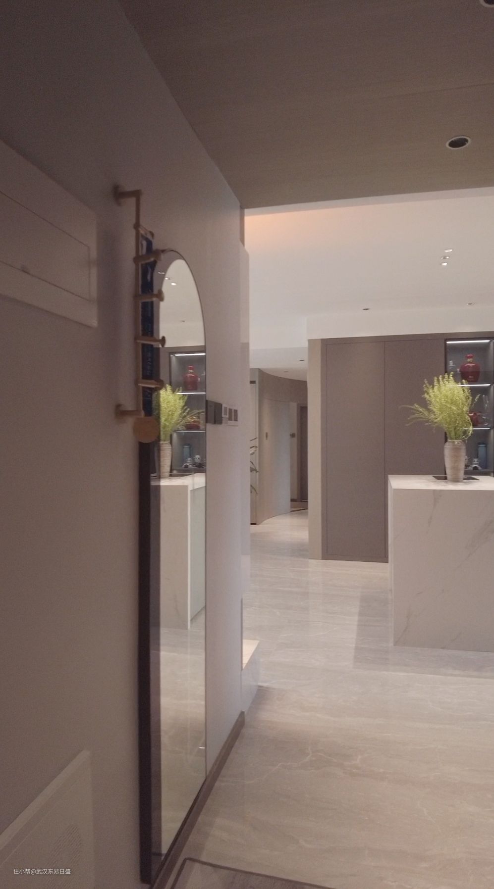 我们在玄关的设计上色系与整屋保持一致,中部及底部留空,中部区域可以放置一些摆件或者日常随身携带的物品,底部空间也是做方便日常进出换鞋使用,总之我们考虑到了业主所有的使用需求,尽可能做出符合业主生活需求的设计。