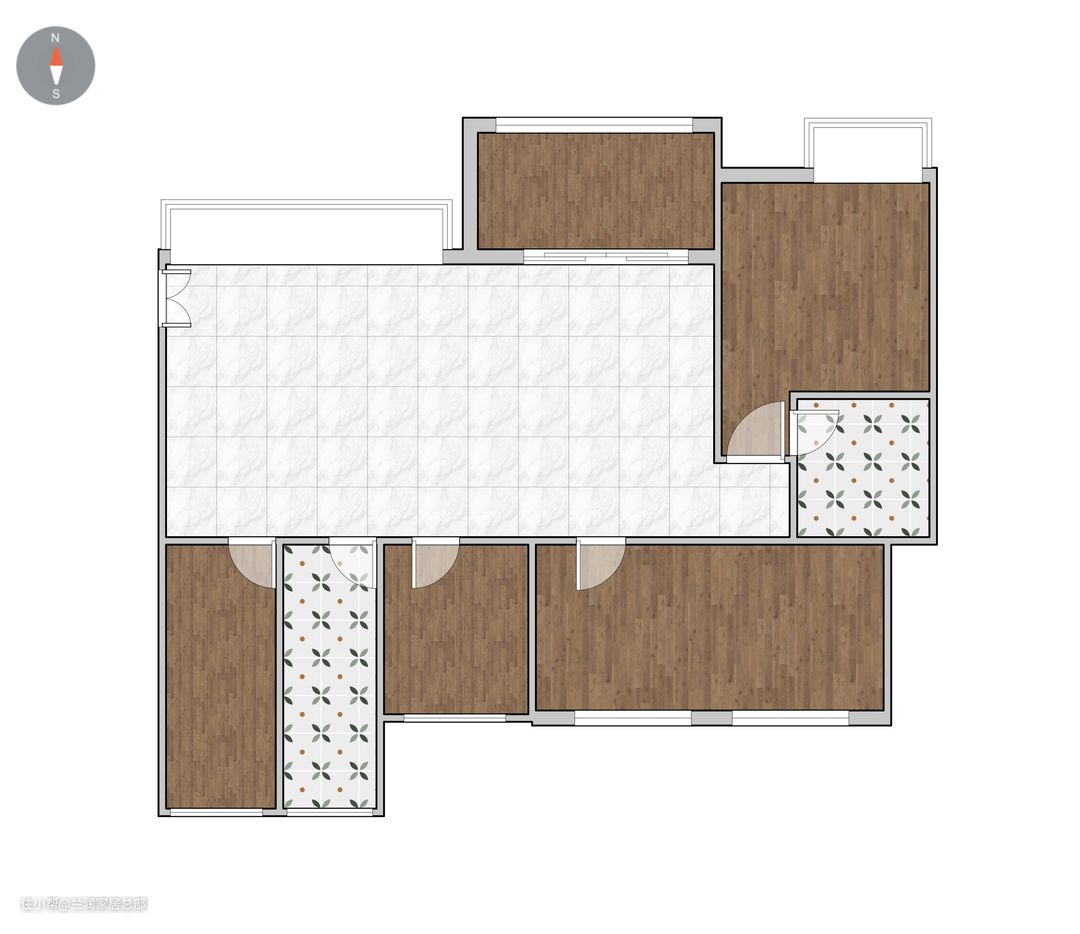 卫生间干湿分离设计,用玻璃门将干区与湿区隔开,避免干区打湿滋生细菌。地面的花砖铺设,让整个空间更具设计感,让人眼前一亮。