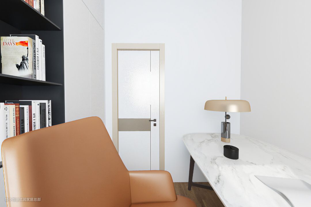书房一侧靠墙设计顶天立地书柜,不留清洁死角,打扫起来更方便。书柜中部留空,设计为开放层,收纳常用书籍,拿取更方便。靠墙另一侧设计大书桌,拥有更大的学习、办公平台,让学习、办公更加舒适安心。