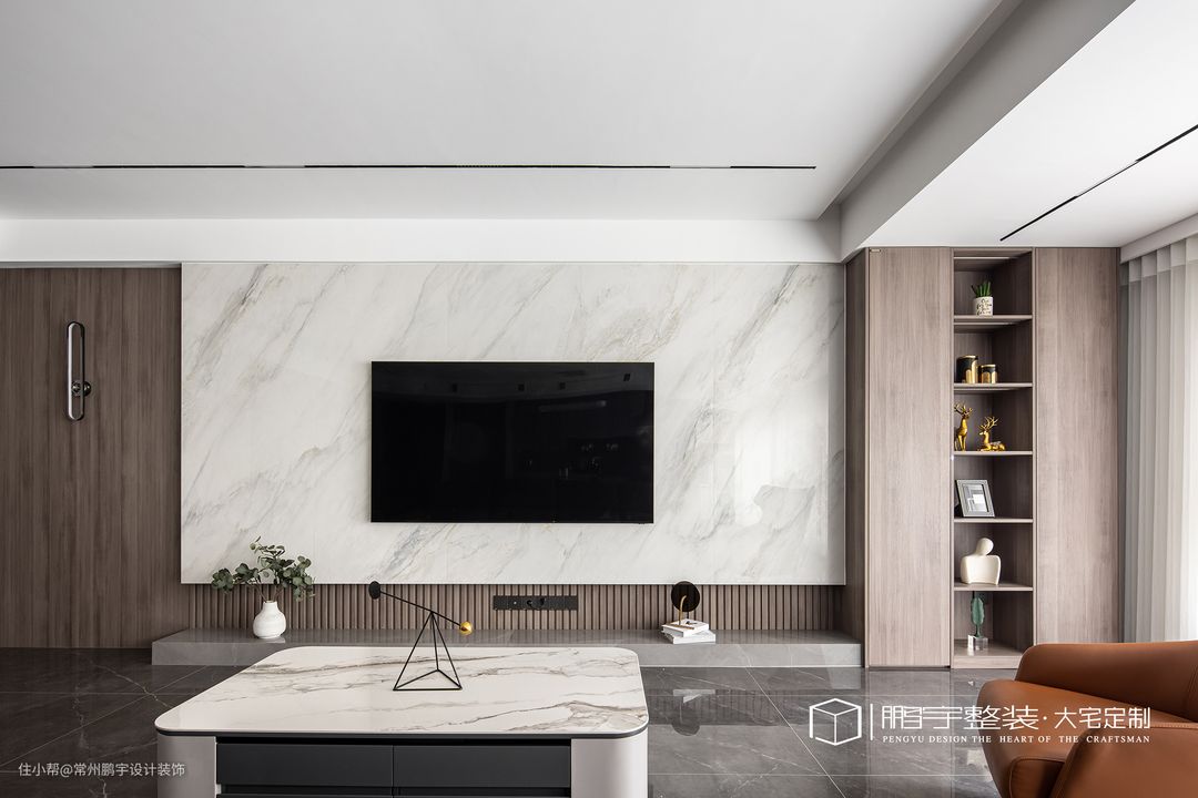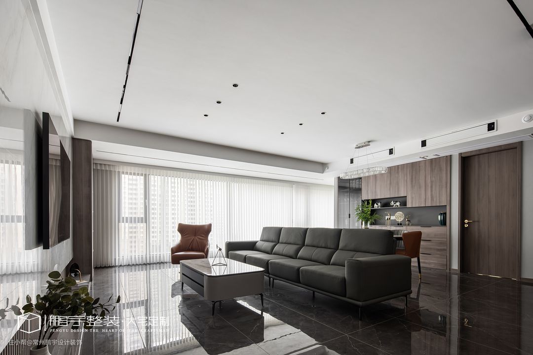 客厅弱化电视背景为中心焦点,讲究以人为主的设计,巧妙地打破客厅与餐厅的界限,以沙发餐桌为重心的生活形态渐次向外自由延伸,光影流转间充满生活哲意。