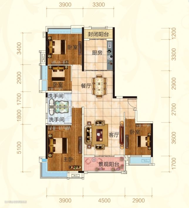 总面积147平,四室两厅一厨两卫。屋主一家一共四口人,男主人在一所学校任职,平时就喜欢看看书写写文章来消遣,女主人则开了一家小超市,平时就喜欢做做饭,研究点新花样。两人还有育有一对儿女,大的已经上了大学,小的还在上初中。虽然大儿子不经常在家住,但必要的房间还是不可少,所以在设计上屋主希望保持原有户型。结合一家人的喜好,新旧结合的新中式风格成为了一家人都满意的选择。