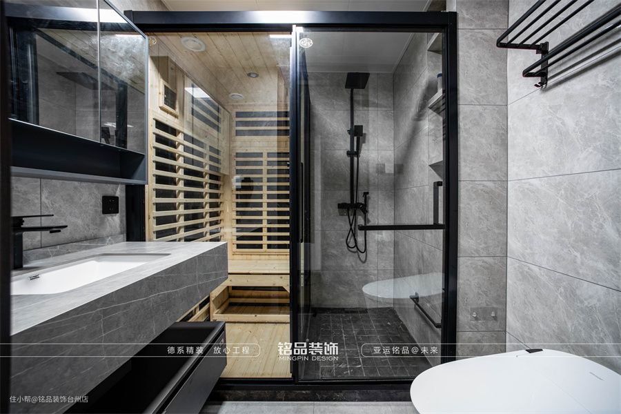 做了四分离的设计,台盆区、马桶区、淋浴区和蒸拿房,是现在比较少见的设计。