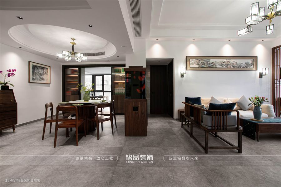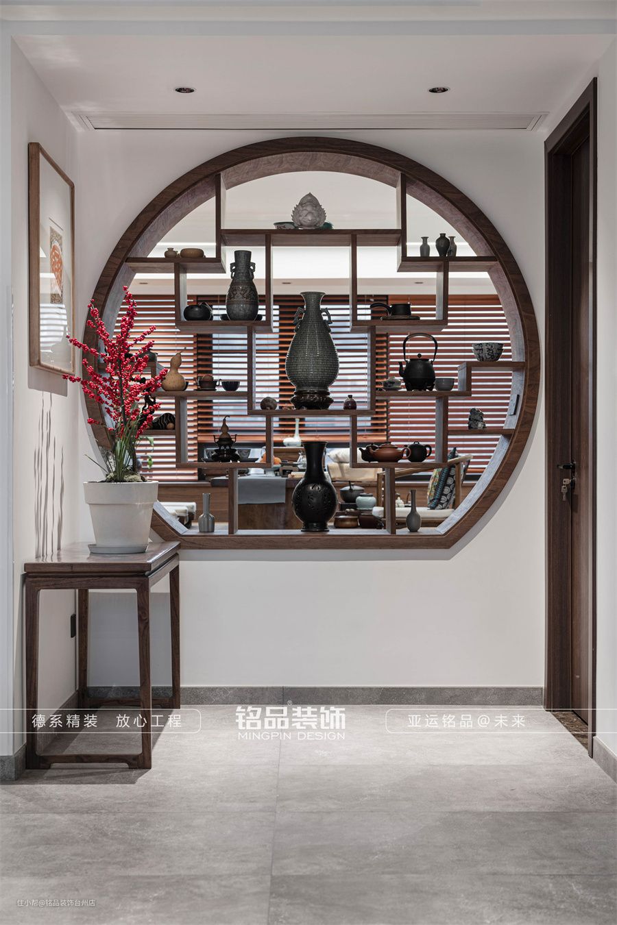 一个简单的圆,能为家带来什么?圆形的隔断墙可以缓解空间的压迫感,搭配上中式意境的摆件、绿植和家居,给人带来属于中国传统风格的唯美意境和禅意。
