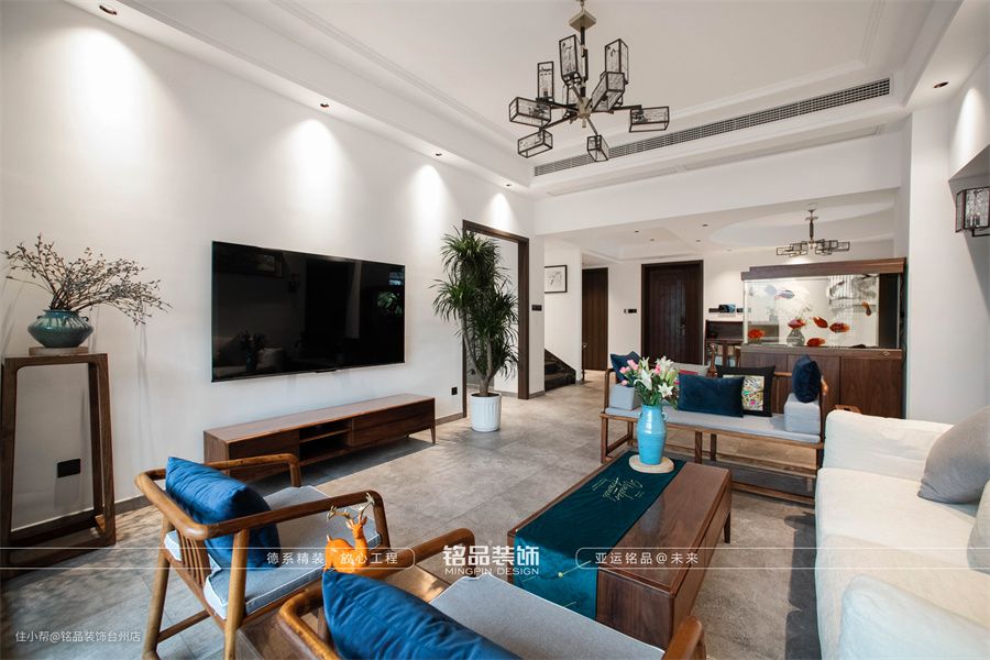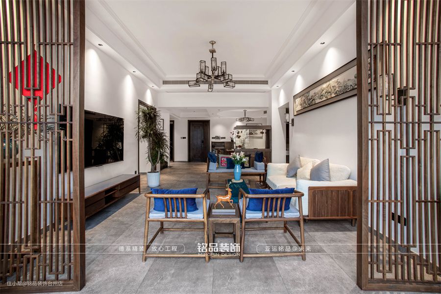 今天为大家分享一套非常有传统韵味的新中式装修案例,女屋主是美院老师,热爱文化底蕴的熏陶,喜欢喝茶交友,古色古香的风格。该房子原本是160方,赠送客厅一个大露台及主卧小露台,加上餐厅那边有个设备平台,及不计算面积的中空位置,这样加起来面积大 197方。原本厨房的空间有点小,刚好把餐厅阳台一起包进厨房,做个中西厨,既满足厨房功能又满足西厨功能,平时人少吃饭可以在西厨这里吃饭,加上做的是落地玻璃窗户边上山景一览入眼帘。