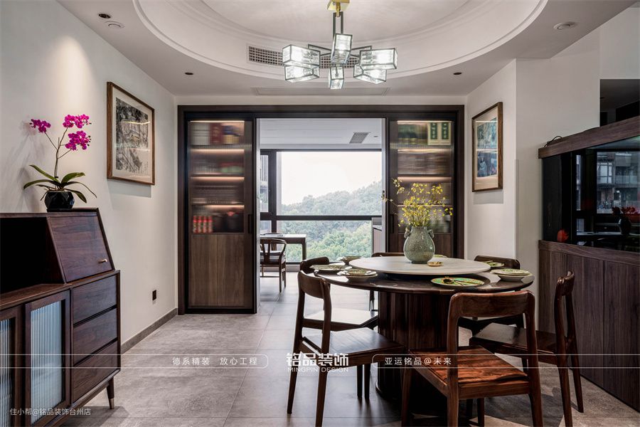 深色的胡桃木家具,朝南敞开的餐厅视角,在古色古香的餐厅里享受一日三餐是一种怎样的体验,就好像回到了小时候,质朴而温暖。