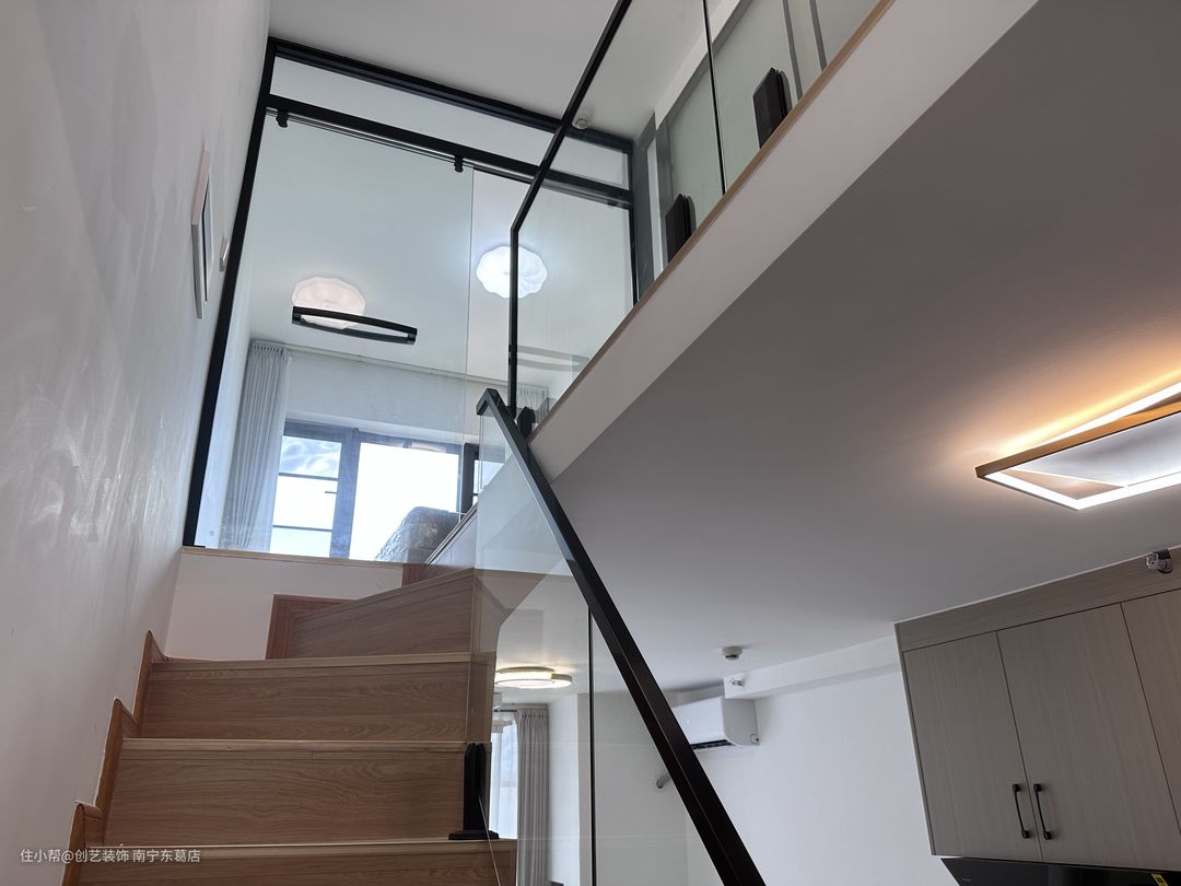 现代简约的栏杆扶手,让楼梯与其他空间分隔,同时也是为安全着想。