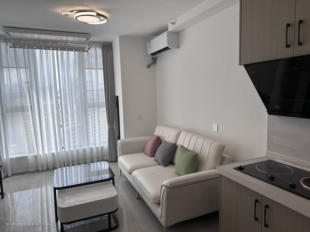 对于小面积的住宅空间来讲,配色上要以简洁明亮的白色、灰色系为主,以此来营造简约明亮的视觉空间。