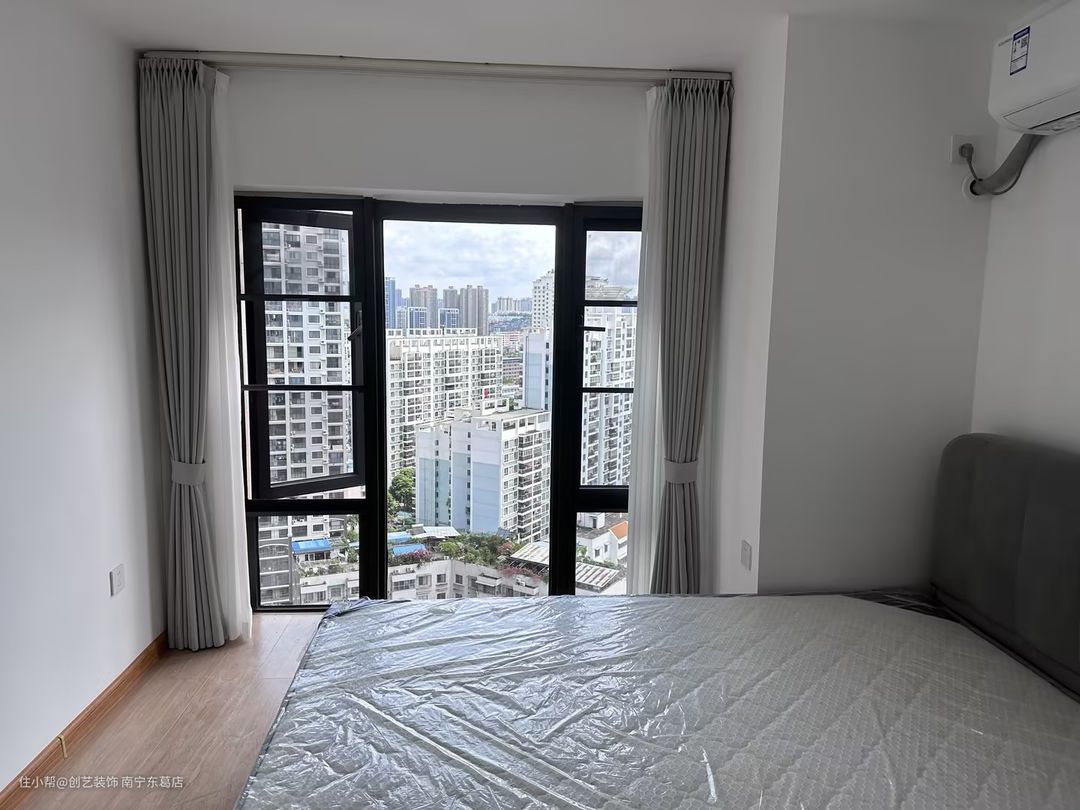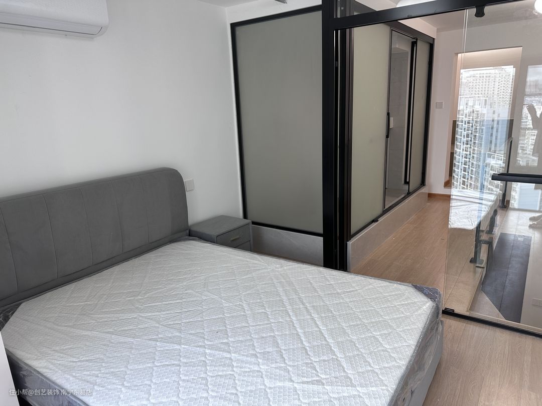 楼梯上来就是卧室,利用玻璃做隔断,增加安全也不会阻挡光线,让卧室更通透。 卧室设计也是延续一楼的简约风,白色调的浅色配色,拥有一个舒适宁静的睡眠空间。