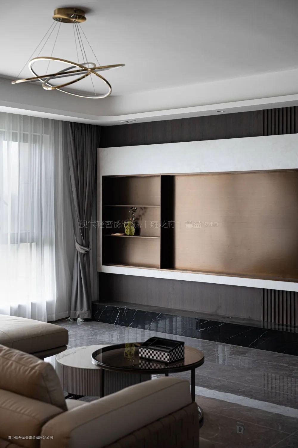 本案根据业主的日常生活喜好,选择了大气简约的现代轻奢风格。沉稳内敛的色调,搭配优雅却不繁冗的家具,赋予简约通透的视觉体验的同时,也在一笔一画地描摹出理想之家的模样。