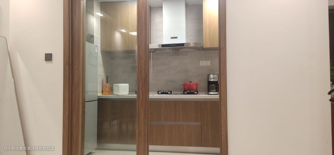 宽敞的厨房对于城市住宅来说是一种奢侈,但在这里,实木柜体、横梁、吊柜五金件等细节都能充分体现美式风格的平静、自然、优雅、通风的氛围。 所以,无论款式漂亮与否,首先要适合。