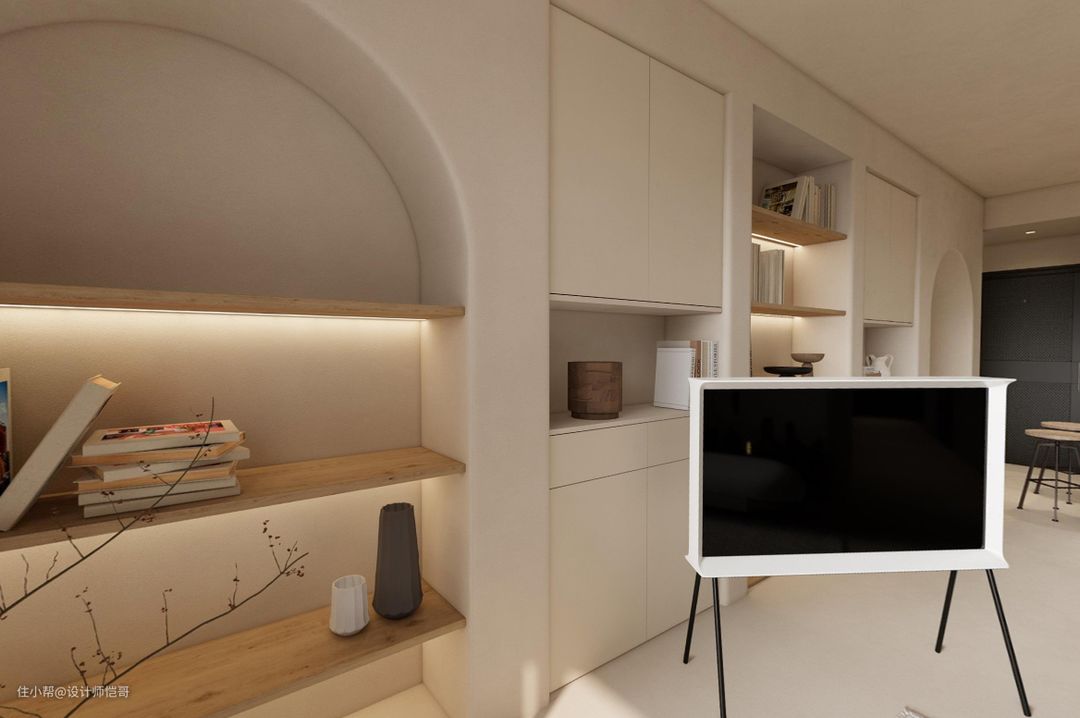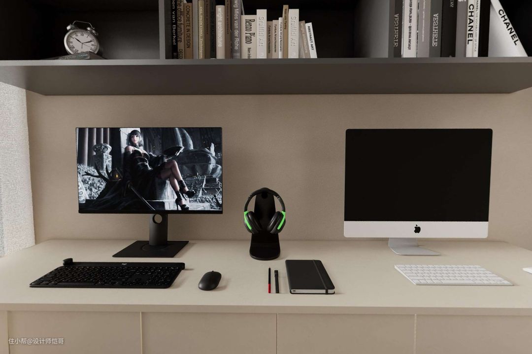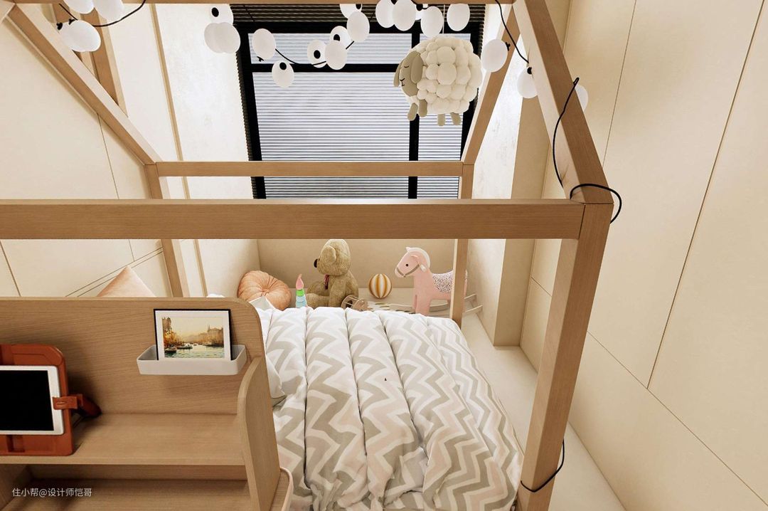 儿童房的面积较小,但是小小的空间一样可以有大作为,既能用作小朋友玩耍益智的教学空间又可以做大人休闲娱乐的空间。小朋友的玩具和衣服都是比较多的,一旦多了就容易杂乱无章,散落一地逼疯强迫症。内嵌的墙体可以设计成收纳柜,小朋友的娱乐时间结束,积木、绒毛公仔直接收纳进柜子就可以了。书本不想被隐藏起来,入门的吊柜就可以解决,收入开放格里,清晰可见,随时都能抽取出来阅读。收藏的模型也有充足的宽长放下。