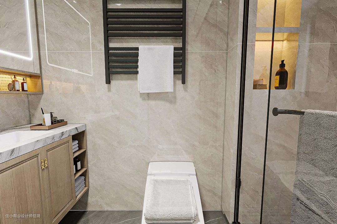 大理石轻奢风才是yyds~!!!耐住耐看还好打理,简单说下思路: ✔️亮面大理石瓷砖,地墙近色不同色,墙浅地深。 ✔️吊顶蜂窝大板通铺,射灯选3000-3500k的,暖色系温馨; ✔️马桶:选个酒店同款智能马桶,故障率低,耐用性才是第一要义!
